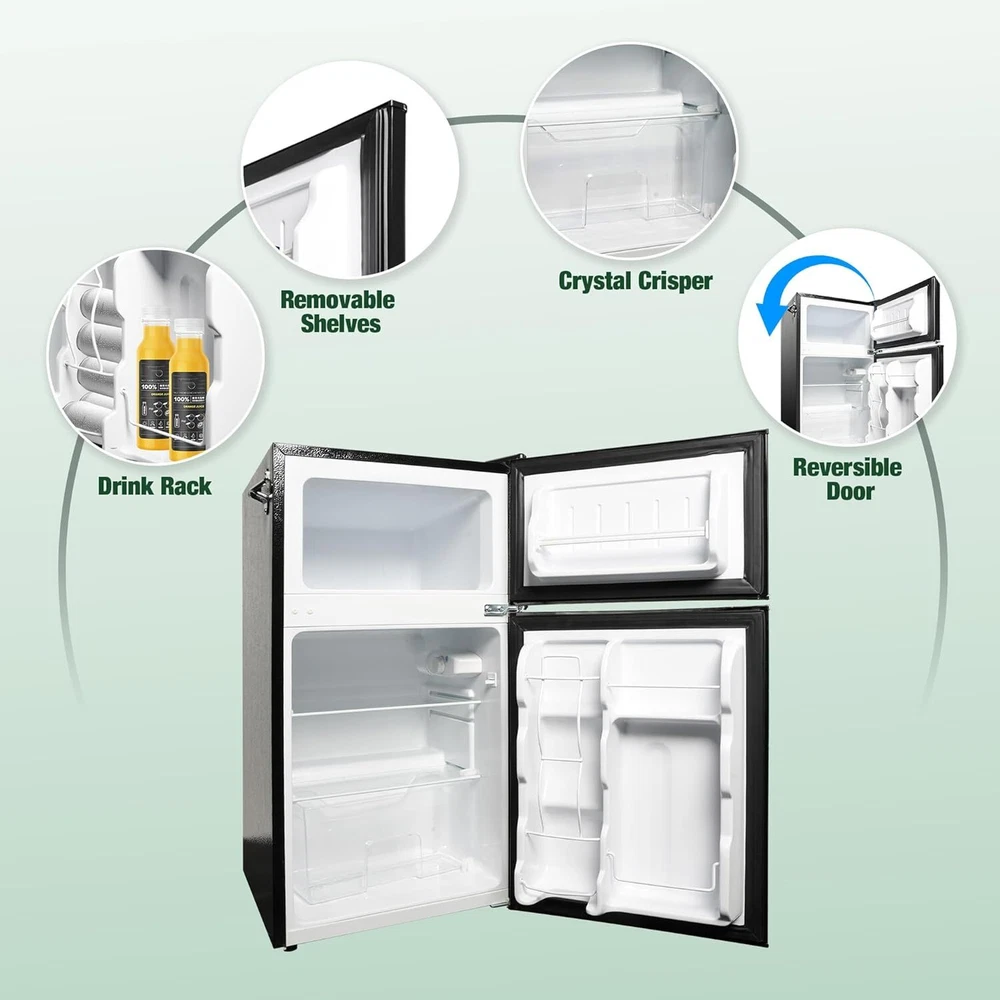 Product Description 5 Temperature Adjustment Settings Ranging Freezer: -11.2°F~6.8°F, Refrigerator: 32°F~50°F, you can easily customize the cooling level to suit your needs. Separate Freezer Compartment Allows you to store frozen treats like ice cream or popsicles alongside your chilled items. Specifications Refrigerant: R600a Energy Consumption: 0.83 kWh /24h Energy Saving Certification: DOE Security Certificate: ETL
