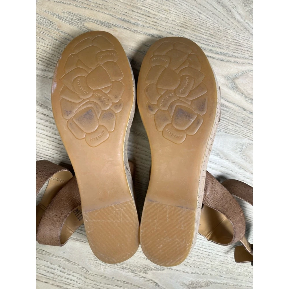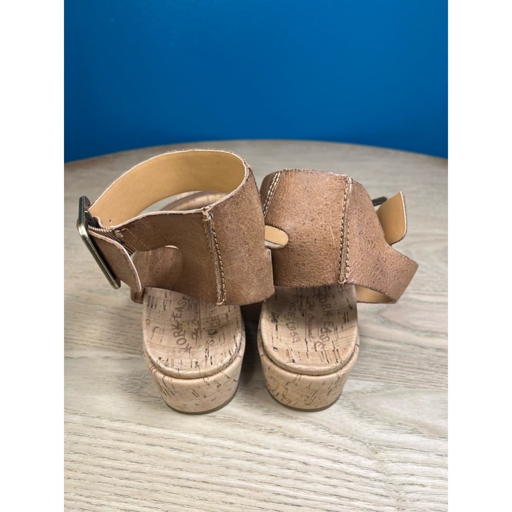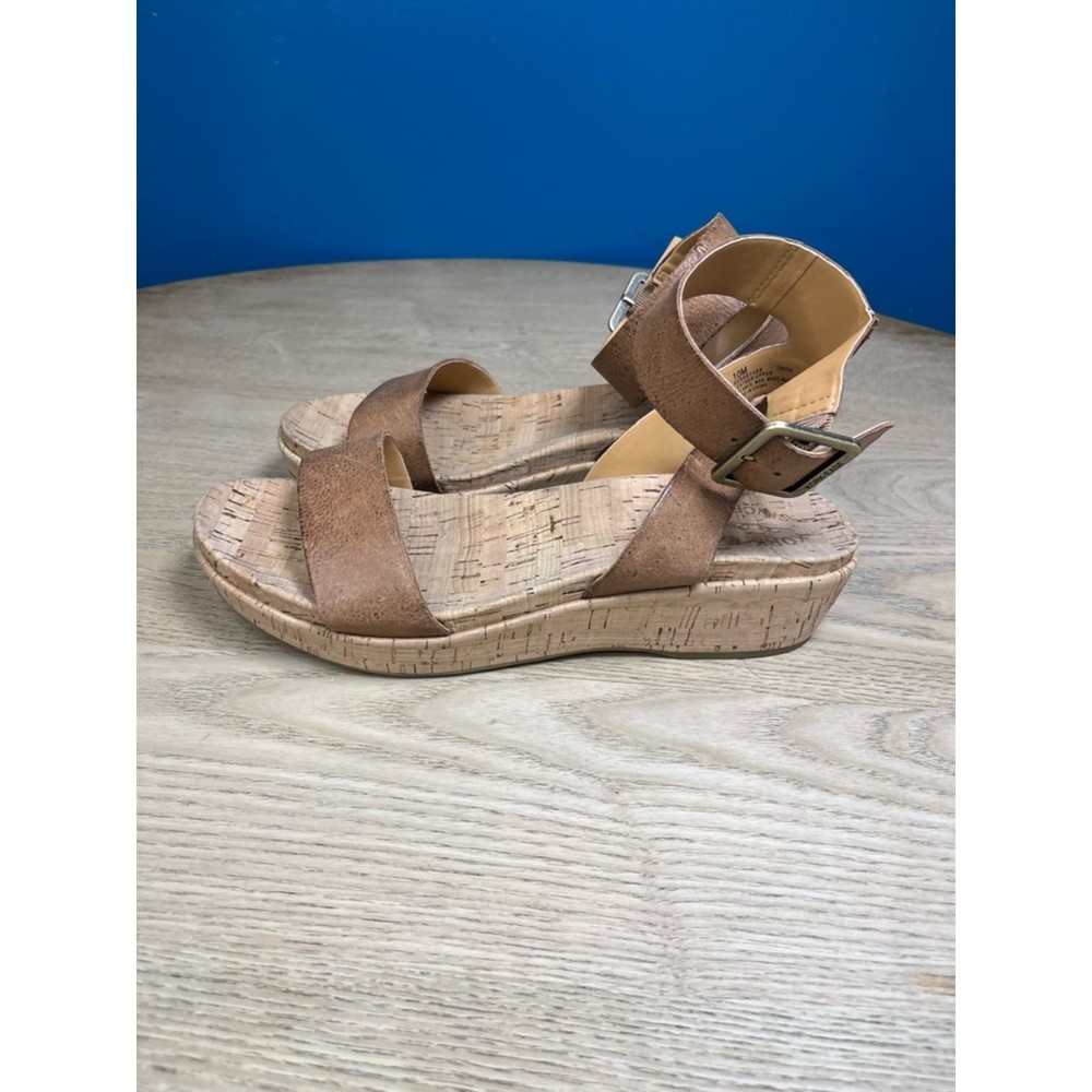 Kork Ease Mullica Leather Ankle Strap Wedge Sandal Tan Brown Adjustable buckle closure at ankle strap. Leather lining with a cushioned footbed for added comfort. Cork-wrapped platform on a durable man-made outsole. Women’s Size 10 Heel Height: 1.5” Platform Height: .75” Please review all photos!