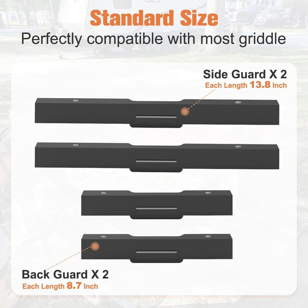 Koutemie Wind Guard for Blackstone 22" Griddle Accessories with Magnetic Grill Heat Shield, Heavy Duty Steel Wind Screens Compatible with Rear Grease Cup and Side Shelf, Black ACHIEVE HIGHER HEAT EFFICIENCY -- Enhance heat distribution and maximize flame efficiency with our wind screens. Bid farewell to flame blowouts and insufficient side table heat. Our grill accessories guarantee even heating, reduced cooking times, and propane savings. Elevate your outdoor cooking experience with optimal heat management. PREMIUM QUALITY MAGNET and STAINLESS STEEL -- These high-quality grilling accessories are made from heavy-duty powder-coated steels. With excellent durable high-temperature, they are built to last. Additionally, the easy-to-clean feature adds to their convenience. These accessories are good buddy for griddle. HIGH COMPATIBLE -- Our wind guards provide excellent coverage for the gaps between the griddle top and burners. They are designed to be compatible with rear grease cups, side shelves and covers. With a standard size design, they fit perfectly with most griddles, ensuring compatibility and ease of use. EASY to USE -- This wind screen features a unique fixed structure that is stable and does not wobble. The convenient design makes it easy to install, remove, clean, and carry. There are two installation options for the magnets: facing up or facing down. You can choose the installation method that best suits your needs. AFTER-SALES SUPPORT -- Our Wind Guard is specifically designed to fit the Blackstone Griddle 22 Inch. Please ensure you verify the length of your Griddle before placing an order to avoid any compatibility issues. If you have any questions or concerns, please don't hesitate to contact us. Our dedicated team will respond promptly within 24 hours to assist you. Product Description: Experience worry-free cooking even on windy days with our wind shields. Say goodbye to flame blowouts as these shields effectively maintain a steady flame, resulting in more even heat distribution across the cooking area. Additionally, they help reduce pre-heating time, allowing you to start cooking faster. Enjoy consistent and efficient heat control with our reliable wind shields. Key Features: 1, Block the wind blowing out the flame. 2, Stop the heat from reaching the shelf. 3, Stabilize the temperature of griddle. 4, Save time for outdoor cooking. 5, Help you save the propane outdoors. 6, Magnet design, easy to use, remove and clean. Specification: Color: Black Material: Heave Duty Steel Item Size & Quantity: 13.8" X 2 + 8.7" X 2 Item Weight: 1.04 Lbs Fit for: 22" Griddle Shipping We offer FREE shipping on all orders! We ship within Three business days of payment, usually sooner. We use a selection of shipping services such as UPS, FedEx, USPS etc. We only ship to the lower 48 states, no APO/FPO addresses or PO Boxes allowed. Local pickups and combined shipping options are not provided at this time. Return You can return a product for up to 30 days from the date you purchased it. Any product you return must be in the same condition you received it and in the original packaging. Please keep the receipt. Feedback Customer satisfaction is very important to us. If you have any problem with your order, please contact us and we will do our best to make you satisfied. Contact Us If you have any queries, please contact us via ebay. We usually respond within 24 hours on weekdays. Please visit our eBay store to check out other items for sale! Thank you for shopping at our store.