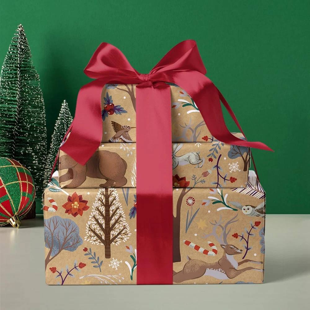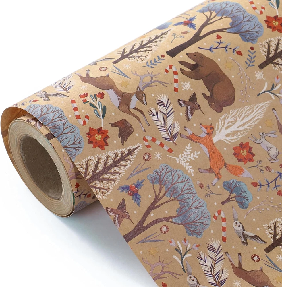 PERFECT SIZE: Each roll measures 17 inches wide by 33 feet long. CHRISTMAS DESIGN: Kraft animal and tree elements design, will make your gift unique and varied. PREMIUM QUALITY: Created with high-quality kraft paper materials, thick and not easily tear or rip. Item came with shrink film to prevent wrapping paper from scratches and reduce dust. USE ALL WINTER: Perfect for Christmas, Holiday, Party. It is also great for decorating Christmas tree. The christmas wrapping paper can be used to add a splash of color to all of your gifts. Your family, children, friends will feel your sincere christmas wishes this holiday season. PERFECT SIZE: Each roll measures 17 inches wide by 33 feet long. CHRISTMA DESIGN: Kraft santa claus, elk, Christmas sled with "Merry Christmas‘’ lettering design, will make your gift unique and varied. PREMIUM QUALITY: Created with high-quality kraft paper materials, thick and not easily tear or rip. Item came with shrink film to prevent wrapping paper from scratches and reduce dust. USE ALL WINTER: Perfect for Christmas, Holiday, Party. It is also great for decorating Christmas tree. The christmas wrapping paper can be used to add a splash of color to all of your gifts. Your family, children, friends will feel your sincere christmas wishes this holiday season. QUALITY CUSTOMER SERVICE: Any question about products or orders, please feel free to contact the customer service, we will try our best to solve the problem.