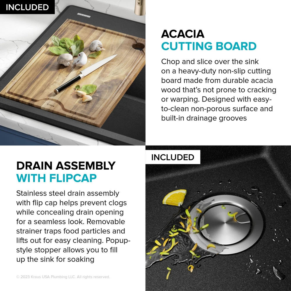 Kraus KGTW12-28 Bellucci 28" Drop In Single Basin Granite - Grey
