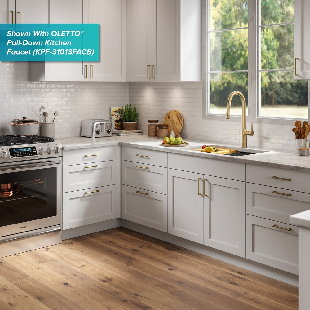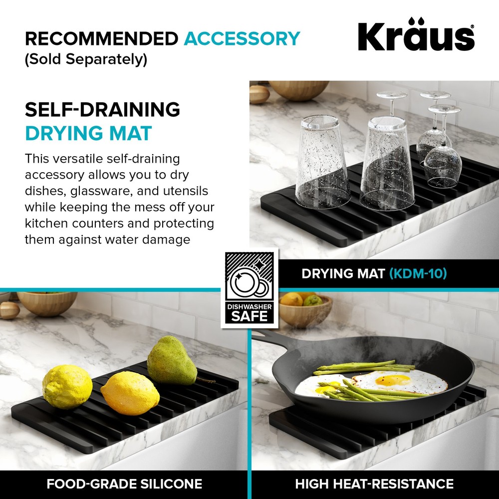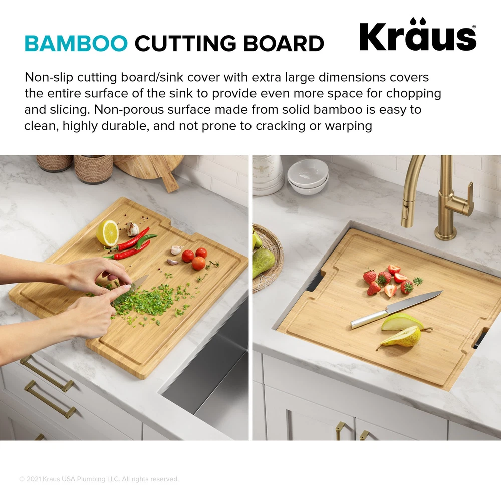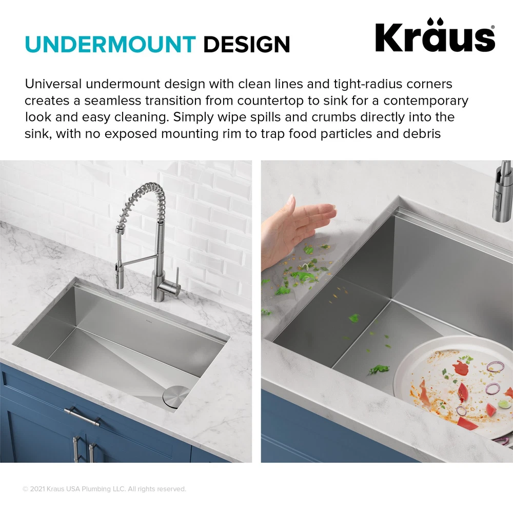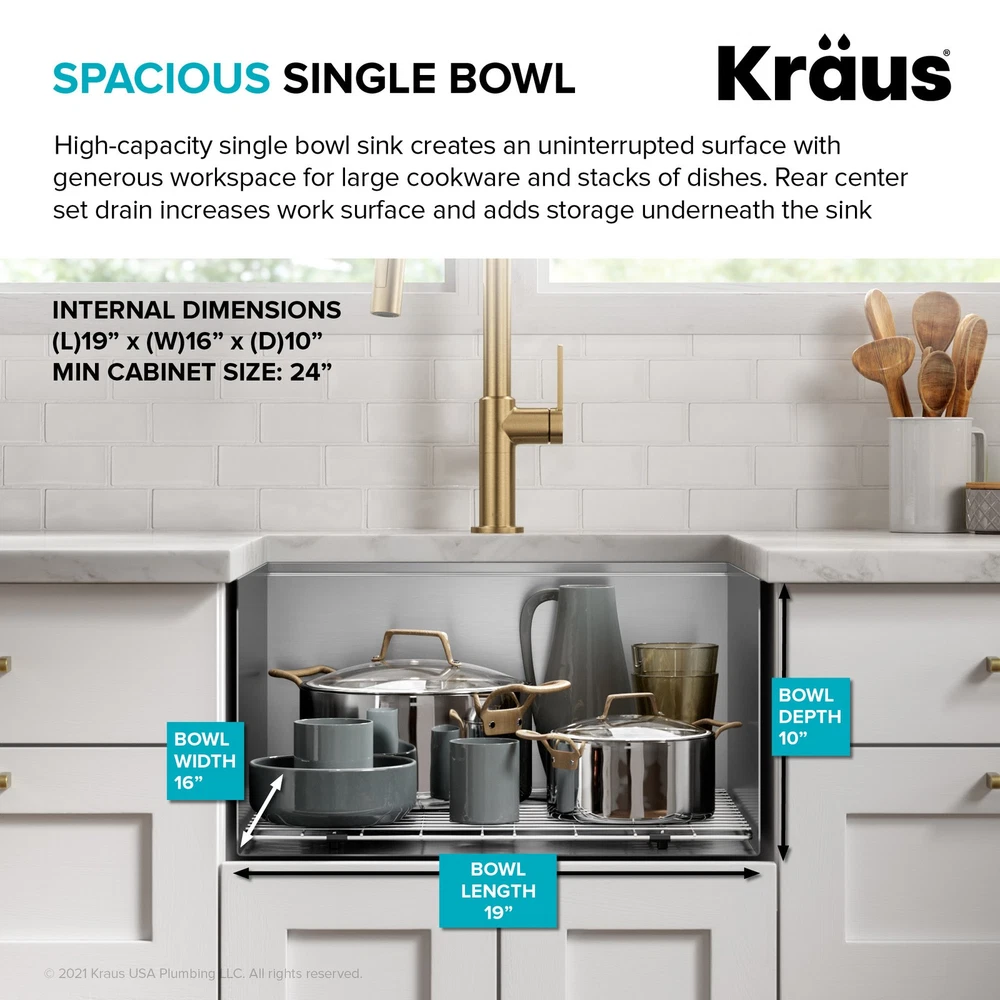 Powered by Frooition Top Products Kitchen Bathroom Lighting Fans Hardware Decor & Organization Kraus KWU111-21 Kore 21" Undermount Single Basin Stainless Steel Kitchen Sink with Basin Rack, Basket Strainer, Cutting Board, and NoiseDefend Technology Overview Item Description The Kore workstation sink is engineered with an integrated ledge for accessories, creating a multifunctional workspace that minimizes clutter around the sink. Kit includes cutting board and roll-up dish rack that allow you to work right over the kitchen sink. Thick 16-gauge stainless steel sink offers maximum durability. Undermount sink installation creates a seamless transition from sink to countertop for a modern look and easy cleaning. Large NoiseDefend sound dampening pads reduce sink noise for a quieter kitchen. smooth finish makes the stainless steel kitchen sink easy to keep clean, with channel grooves for better draining. Sink for kitchen comes with grid, drain, and hardware for undermount kitchen sink installation. Also available in drop in sink design. Kraus KWU111-21 Features: Covered under Kraus's limited lifetime warranty Constructed from 16 gauge stainless steel Undermount installation - sink will install under the countertop Single basin design for maximum work space Sound absorbent construction to prevent dish clatter and under cabinet condensation Rear drain location increases available space under the sink Coordinates with products from the Kore line All mounting hardware required for assembly is included Kit includes: workstation sink, protective bottom grid, heavy-duty bamboo cutting board/sink cover, drain assembly with strainer, removable decorative drain cover, mounting hardware, cutout template Wear-resistant finish with smooth surface is easy to keep clean and not prone to corrosion or rust, gently rounded corners on the bottom of the stainless steel kitchen sink help prevent build-up for easy maintenance Sloped bottom with channel grooves helps prevent water from pooling in the sink, optimized slope helps keep fragile stemware from tipping over Heavy-duty bamboo cutting board/sink cover is not prone to cracking or warping, with a non-slip design and built-in grooves that prevent spills, easy to clean non-porous surface is resistant to odors and stains Stainless steel bottom grid with soft rubber bumpers promotes better draining and helps protect the surface of your sink from scratches by keeping dishes elevated Stainless steel drain assembly with easy-to-clean strainer helps keep food and debris from clogging the drainpipe, removable decorative cover conceals drain opening and garbage disposal for a clean look Easy to clean stainless steel kitchen sink with rounded corners on the bottom of the bowl to help prevent buildup over time, straight sidewalls and 90° angles maximize usable workspace in the sink for kitchen Modern design with clean lines, tight corners, and space-saving accessories that fit right over the sink, freeing up counter space for other tasks and creating a streamlined, contemporary look You can choose Kraus products with confidence - top-rated US-based customer service means no hassle for the life of your sink Kore stainless steel sinks with workstation ledge are available in a range of sizes and mounting options, including drop in sink, farmhouse sink, utility sink, and compact bar sink models Recommended accessories (sold separately): enhance the functionality of your kitchen sink with the Kraus garbage disposal (KWD100-100MBL) that gets rid of food waste in a flash, recommended kitchen faucet (KPF-1610) creates a contemporary look Certifications: cUPC (ASME A112.19.3/CSA B45.4), MASS Kraus KWU111-21 Technologies and Benefits: NoiseDefend™: Extra-thick rubber sound dampening pads cover 80% of sink base to absorb noise and vibration for a quieter kitchen experience Kraus KWU111-21 Specifications: Sink Length: 21" (left to right) Sink Width: 19" (front to back) Sink Height: 10-1/2" (top to bottom) Basin Dimensions: 19" L x 16" W x 10" D Minimum Cabinet Size: 24" Drain Connection: 3-1/2" Why Choose BuildInc? OUR PROMISE TO YOU About Us At Build, we promise to provide the best selection we can, most competitive pricing, and unmatched customer service. Our store has quality home improvement products from trusted manufacturers like Moen, American Standard, Delta, Kraus, Kichler, Progress Lighting, Schlage, Kwikset, Baldwin, Broan, NuTone, Air King, and Rev-A-Shelf. With over 200,000 home improvement products for you to choose from, we have just what you need to get your project done. Fast & Free Shipping We promise to make it our priority to get you your items as fast as we can. We ship from 440 warehouses around the country, ensuring that your product will get to you as soon as possible. We know you're eager to get your hands on your new purchase, we would be too. As a bonus, most items ship for free. Returns We are happy to accept returns of unused or defective items for a refund within 30 days from the date of delivery. For returns outside 30 days, please contact our Customer Service team to go over our options. For full details, please view the Shipping and Payments tab above. To initiate a return simply go to the eBay Returns Portal and submit a return request. We ask that all items be returned with all original components via a traceable method. Once your return is received and processed, we will quickly get your refund or replacement issued. If for any reason you are unsatisfied with your purchase or for product or warranty questions, please contact Customer Service team for assistance. More Items! View more great items Eurofase Lighting 38037 Leonardelli 48"W LED Abstract Chandelier - Chrome $2,028.00 Eurofase Lighting 37056-018 Admiral 6 Light 62"W LED Ring - Gold $7,602.00 Kingston Brass KF5335.TKF20 Trimscape Toilet Supply Kit - Brass $81.15 Innovations Lighting 916-5CR-15-25 Cone Chandelier Cone 5 Light - White $706.20 About Us | Shipping | Returns | Contact Us | 