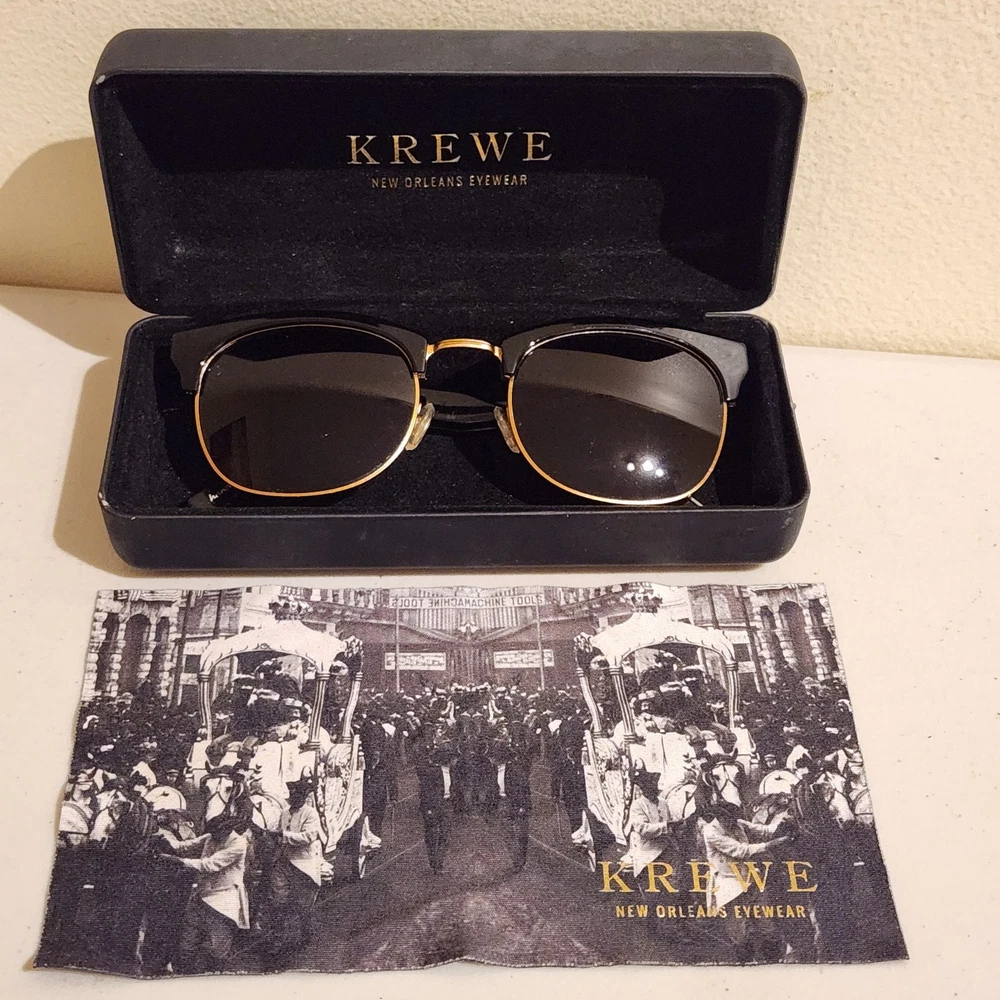 Lenses: Feature polarized lenses that offer 100% UVA/UVB protection, anti-reflective, and scratch-resistant coatings. Design: These are a retro-inspired, semi-rimless, or "browline" style frame. Construction: The frames are handcrafted, combining glossy acetate and glossy 24K gold-plated stainless steel hardware, enhancing their durability. Origin: The L.G.D. (Lower Garden District) model is named for a neighborhood in Krewe's hometown of New Orleans, where they are designed. Welcome to Thrift By Grace, aka the Pop Up Thrift Shop! My goal is to put the 'deals' back into thrifting. All items are priced at fantastic prices, even if they're worth much more, because I'd rather you enjoy a great deal and I keep a great item out of the trash! Speaking of trash, we're sustainability focused, so your item will arrive in a repurposed shipping box or envelope to help the environment just a little bit more. As always, if there is any wear on an item, it will be shown in photos. Feel free to message with any questions! Bundle to save!!!