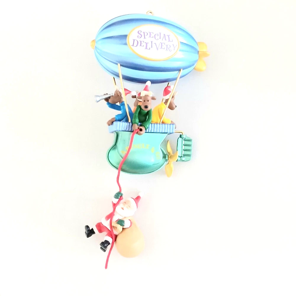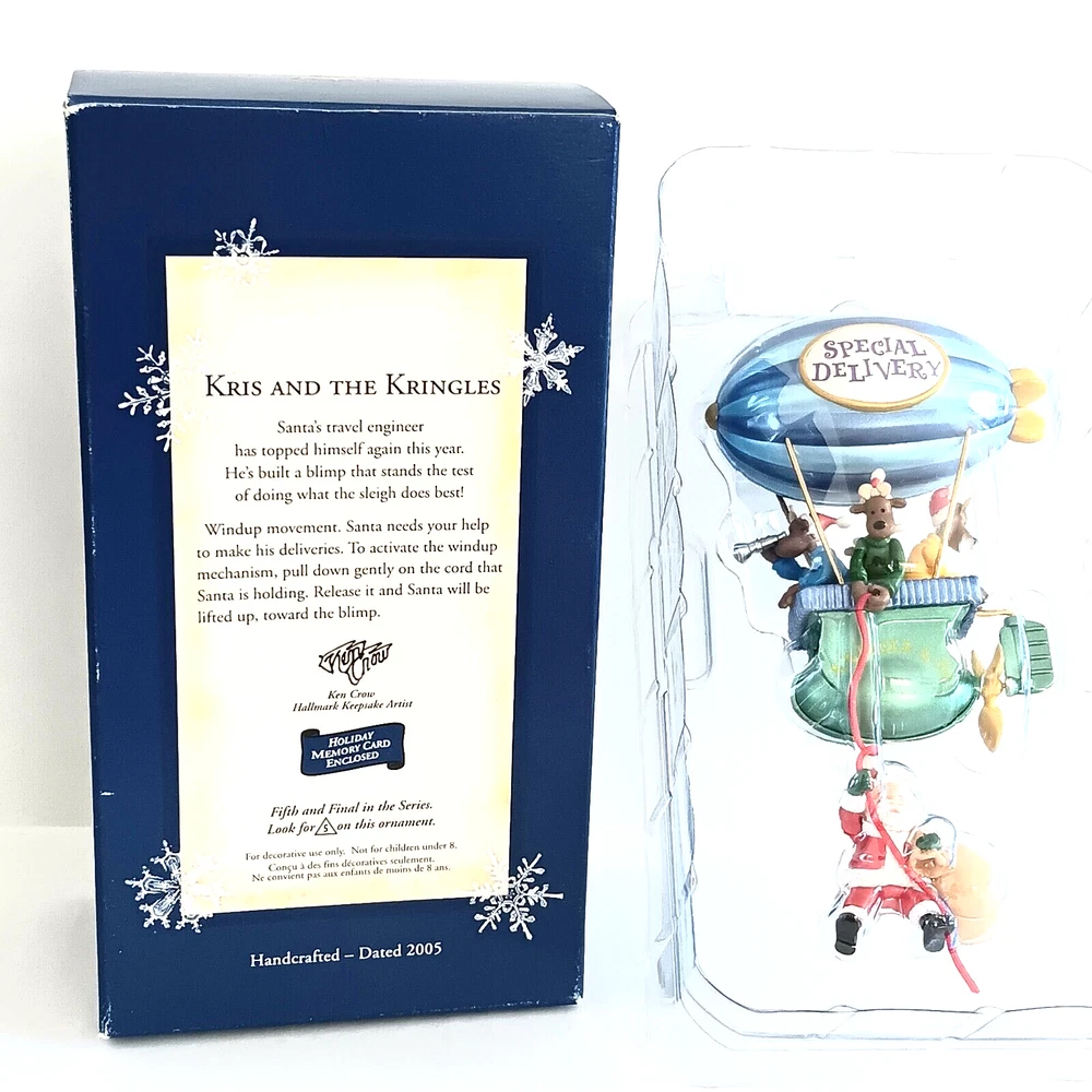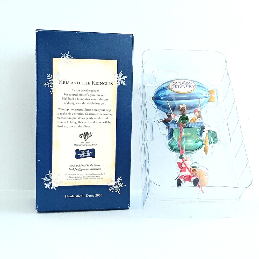 This Hallmark Ornament from 2005 features a unique design of Santa and his reindeer with a blimp, created by artist Ken Crow. The ornament is in great shape and comes with a wind-up movement, perfect for adding to your Christmas tree or collectibles. It belongs to the Ornaments collection and is a perfect gift for anyone who loves collecting unique and vintage items. Hallmark Ornament Kris and the Kringles #5 2005 Santa Reindeer Blimp Wind Up Pre-owned in original box. Artist Ken Crow, Fifth and Final in the Series. Wind up movement.
