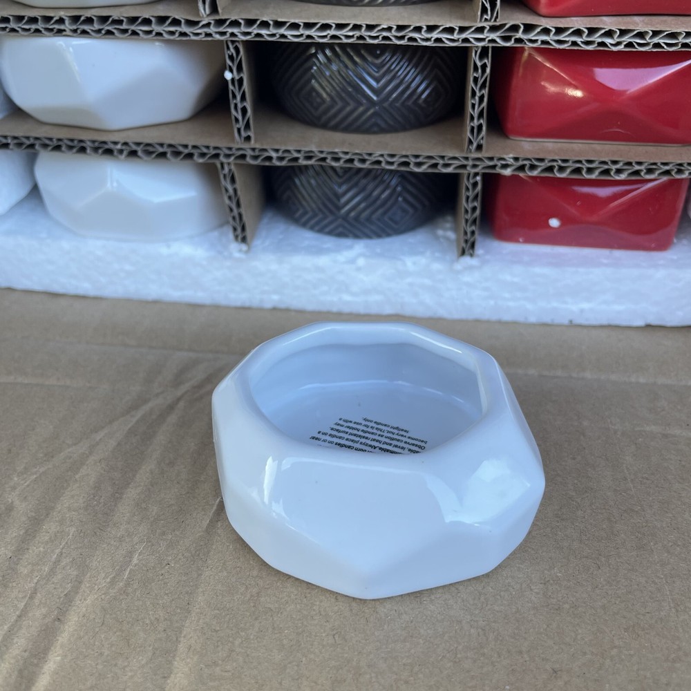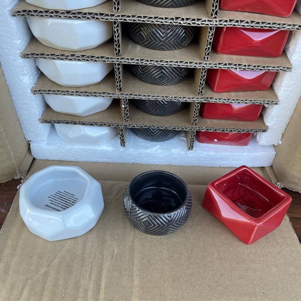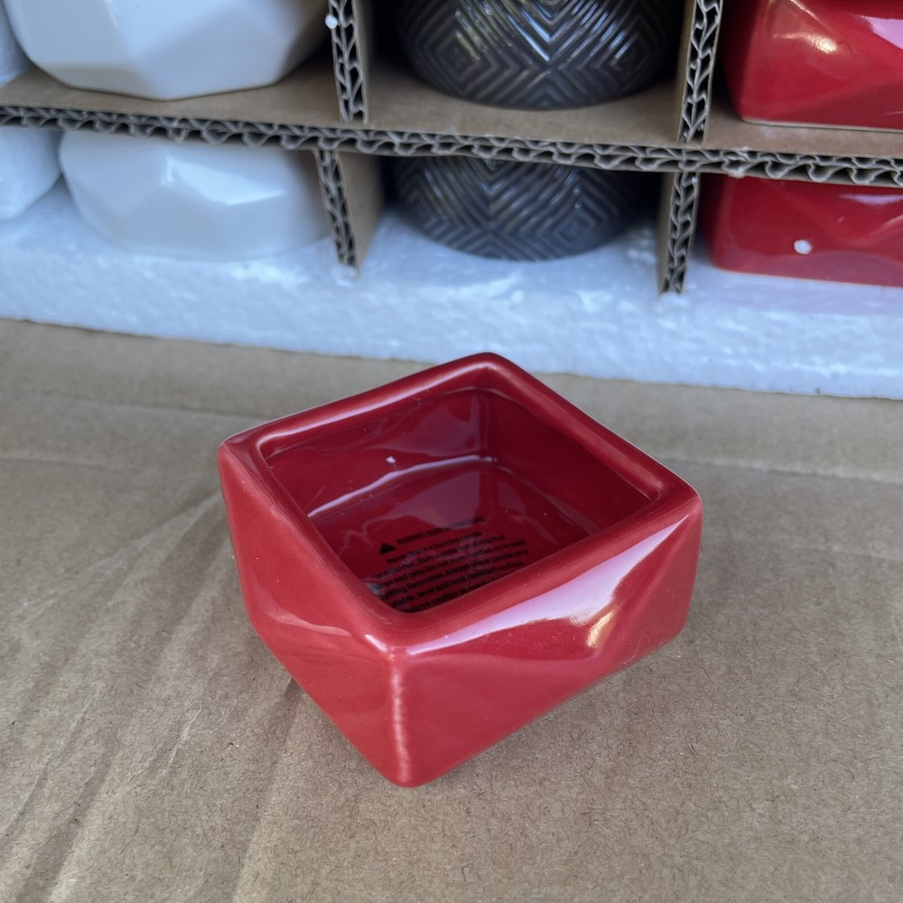 18 Ct Votive Tealight Candle Holder Assorted Shapes and Colors 6 Red Square 2.5" 6 White Octogon 2.75" 6 Round Brown 2.25" For inventory - Alakska Shelf #4