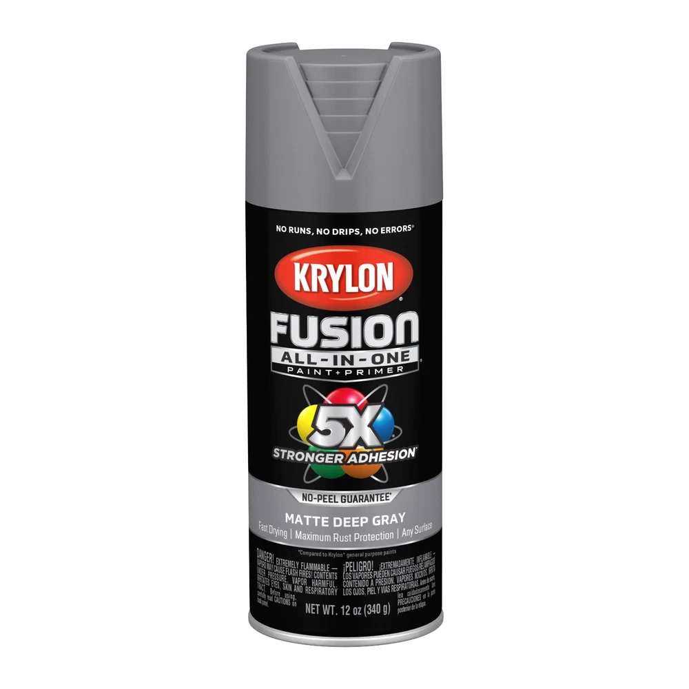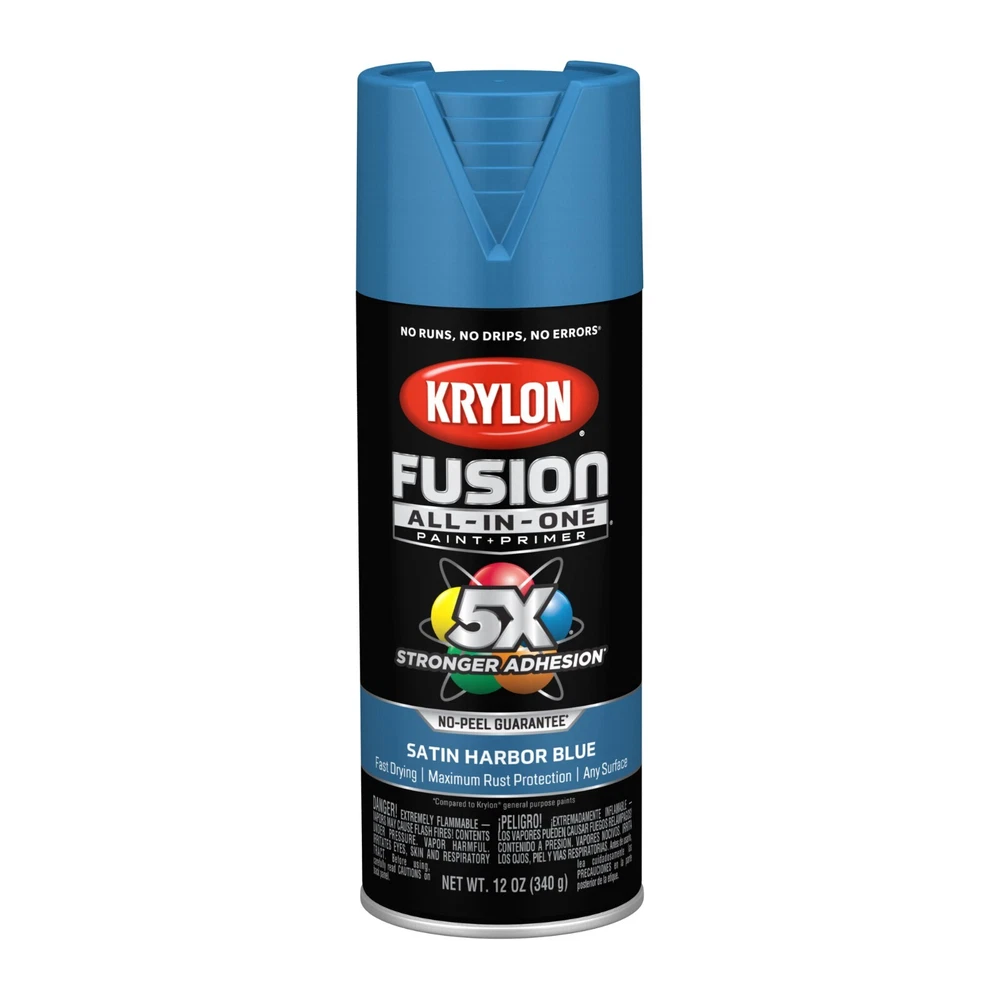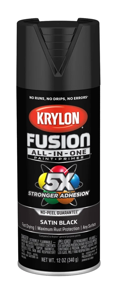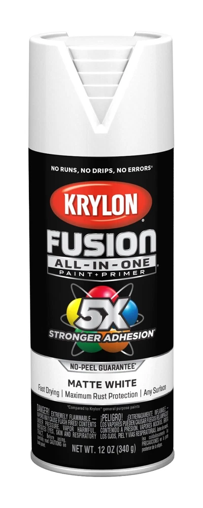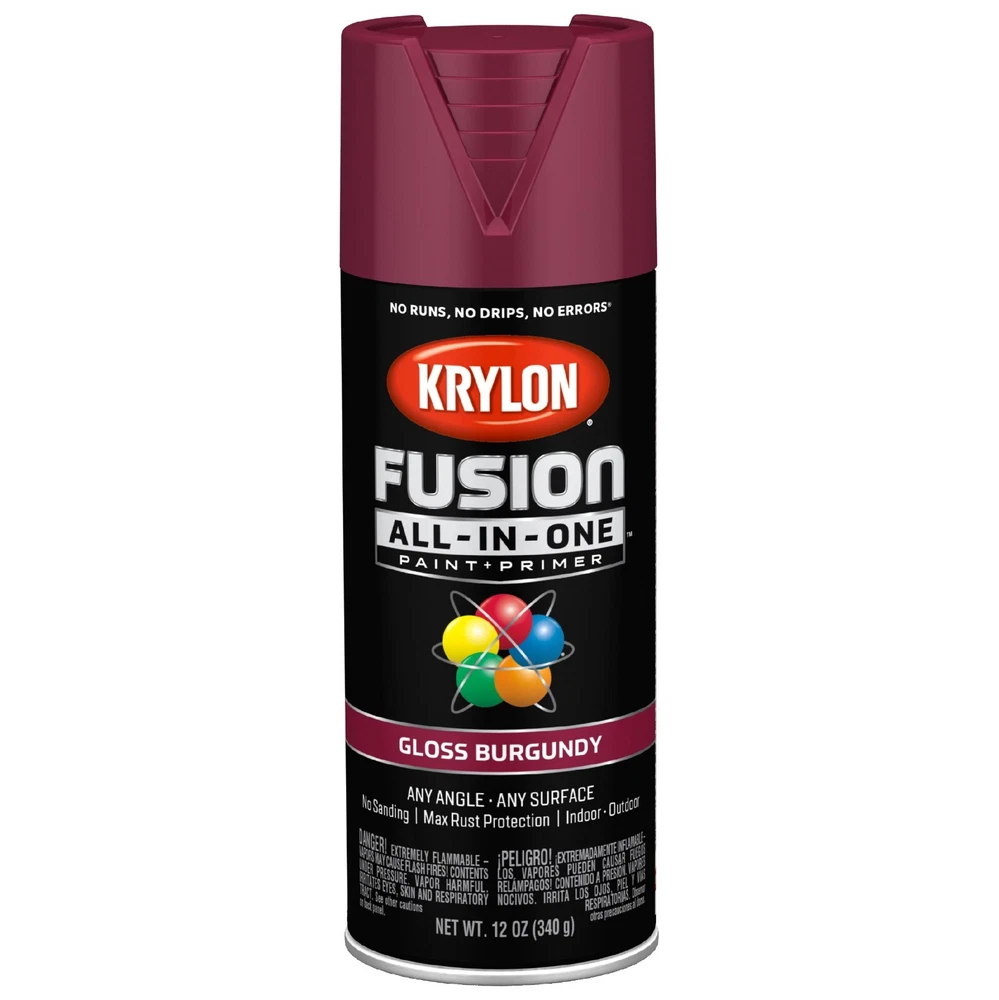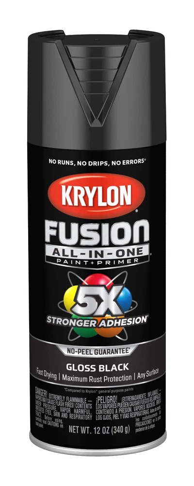 Krylon Fusion All In One Spray Paint Gloss 5x stornger 12 Oz Choose your color • Spray paint delivers best in class adhesion, durability and rust protection • Indoor/outdoor spray paint with maximum rust protection • All-purpose spray paint bonds to difficult surfaces without sanding or priming • Use on plastic, wood, metal, PVC, hard vinyl, tile and more • Easy push, big button spray tip with spray any way capabilities • Dry to the touch in 20 minutes or less with no runs, no drips, no errors • Spray paint offers a modern, cozy finish to any project • Spray paint can soften and add a unique feel • 12 oz. can spray paint covers up to 25 sq. feet