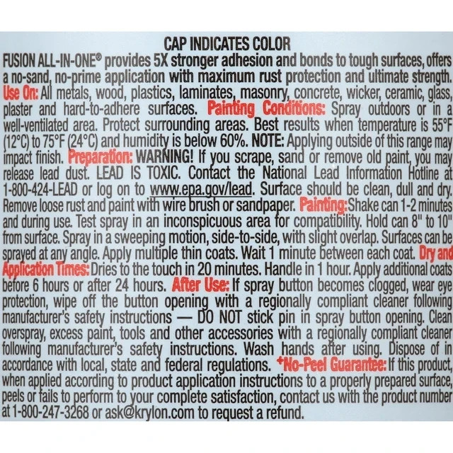 Krylon Fusion All-In-One, Satin Black, 12oz, Excellent Adhesion, Rustproof 2Pack Excellent adhesion and durability Indoor/outdoor use with maximum rust protection No sanding or priming required Big button spray tip with spray any way capabilities Krylon Fusion All-In-One is a premium product that bonds to difficult surfaces such as plastics and ready-to-assemble furniture without sanding or priming. This product provides maximum rust protection for all outdoor projects and offers a broad color palette with multiple finishes and sheens for indoors and out. Shipping & Handling We process orders within 2 to 7 business days (excluding weekends and holidays). Standard U.S. shipping is estimated at 3 to 9 business days. International shipping averages 6 to 12 business days, with some regions up to 15 days. Terms of Sale Payments from unverified PayPal accounts or suspected fraud may be declined. Listings may end early if there are issues with the item. Defective or wrong items require clear photos for refund or reshipment. Shipping fees are non-refundable. Feedback Policy Positive feedback will be left after payment confirmation. Your 5-star rating and positive feedback help our business grow. Please contact us first if you have any issues before leaving neutral or negative feedback. Contact Us Feel free to message us on eBay; we respond within 24 to 48 business hours.