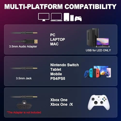 Return Policy Fast Delivery Trusted Seller Krysenix PG1 RGB Gaming Headset for PS4/PC/Nintendo Switch/Xbox, PS5 Headset with Mic, Gaming Headphones with Mic, Noise Cancelling Headphones with 3.5mm Jack Black/Blue Product Product Description ? Professional and Comfortable Design: The Krysenix Gaming Headset combines a sleek design with cool shapes and vibrant RGB lights. It is an ideal gift for Christmas, birthdays, and perfect for boys and girls, family and friends. ? (⚠️NOTE: the RGB light on the headset must be plugged into the USB port to activate) ? Ergonomic Design: The lightweight headband and ear cushions reduce the pressure on your head and ears. They also provide physical noise isolation that shields up to 85% of outside noise. The earmuffs are made of skin-friendly breathable sponge and leather, and the ergonomic design ensures a comfortable fit, even when wearing glasses for a long time. ? Adjustable noise-cancelling microphone: The built-in omnidirectional microphone of the Krysenix PS5/PS4 headset ensures high-quality communication. Its excellent noise cancellation absorbs noise sensitively while suppressing background noise, ensuring clear communication in the game. The long, flexible microphone can be adjusted up to 120° for your comfort. ? Stereo Surround Sound Quality: Experience immersive gaming with the Krysenix gaming headset, which features high-density 50mm dual neodymium audio drivers. These drivers provide crystal clear stereo sound and responsive audio, making it perfect for football games, shooters, racing games, Switch games, and more. ? Multiplatform Compatibility: The Krysenix headset with microphone is compatible with PS4/PS5/Xbox One/Switch/PC/Laptop and most other devices with a 3.5mm audio jack. ? One-button volume control: The Krysenix Xbox gaming headset features a high-strength, tangle-resistant 89-inch braided cable. It also features a rotating volume control and a one-button microphone mute function. The volume button on the PC headset, along with the microphone icon for quick mute, provides convenient control of chat and game audio. ✨ Soft RGB Lighting: Spice up your gaming setup with the dynamic RGB light bar on Krysenix gaming headphones. When the headphones are connected to the USB port, the LED lighting dynamically changes with the game, creating an immersive visual experience. The soft RGB lighting gives the headphones a sleek touch, making them an excellent choice for video recording and live broadcasts. Shipping Returns Payment Shipping Shipping is FREE to all addresses. All our stock is shipped from warehouses in Germany. All orders are shipped within 24-72 hours of payment. Check our feedback to see the great feedback on the FAST shipping we offer. Returns Seller does not accept returns. Payment We currently accept payments only through eBay administrative statements. Once payment is received, we will ship your shipment within 1-3 business days. Please see the 'Shipping' tab for more information on shipping speed to your destination.