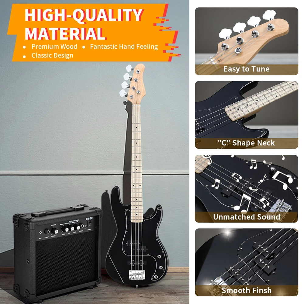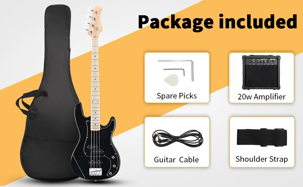 listing template VISIT OUR STORE SIGH UP FOR EMAIL Ktaxon 46-In Electric KP Bass Guitar Starter Kits for Student Ktaxon Full-Size KP 4 String Standard 46in Electric Bass Guitar with 20W AMP Kit for Beginner or music lover Sunset color Introductions: Looking for a high-performance bass guitar? Then take a closer look at our Ktaxon KP 46in Full-Size Electric Bass Guitar ! Featuring great sound and ease of playability, it is an ideal choice for beginners as well as bass musicians. Constructed with a wooden and synthetic body with a stunning finish, it delivers an outstanding look and sound. Comfortable neck and fingerboard are ideal for any style of playing. Adjustable bridge provides solid tone, sustain, and great intonation. High-tensile strength fretwire ensures durability and smooth playability. Bring it home right now! Features: Split Single-Coil Pickup; Single-Coil Pickup;2 x Volume;1 x Tone Standard 34in Scale Length The neck double adjustment: Two - way adjustable neck Audio interface: 1/4" Jack, suitable for general audio 20W electric guitar audio 1/4 inch headphone output jack, used for silent practice 1/8 inch auxiliary input jack, used for MP3 player Complimentary: guitar bag, guitar cable, shoulder strap, tremolo arm and pick Specifications: Style:Electric Bass Guitar with 20W AMP Kit Body Orientation: Right Handed Body: Basswood Color:Sunset color 3. Neck and Fingerboard Neck: Maple Fingerboard: Rosewood Strings: 4 Frets: 20 Nut width: 1.656 in. (42 mm) Scale Length: 34” 4. Pickups & Hardware Pickups: Split Single-Coil Pickup; Single-Coil Pickup Control: 2 Volume;1 Tone Hardware: Fixed(Chrome) 5. 20W Bass Amp Front Panel Controls: Volume, Treble, Mid, Bass, Phones Bass Guitar Input: (1/4" Jack) Headphone output: (1/4" Jack, Speaker defeating) Dimensions: 29*27*11.3cm Weight: 3.0 kg Speaker Size: 6.5 inch Impedance: 8Ω Auxiliary input jack(MP3): 1/8 inch 6. Dimensions Guitar: (46.6 x 12.6 x 1.65)" / (116 x 32 x 4.2)cm(L x W x H) Gutiar Weight:7.60lb / 3.45kg Package Includes: 1 x Bass 1 x Bass AMP 1 x Bass Bag 1 x Guitar Strap 1 x cable 1 x Wrench Tool 1 x Plectrum Warm Note: WARNING USE OF SPEAKERS: TO REDUCE THE RISK OF FIRE OR ELECTRIC SHOCK DO NOT EXPOSE TO RAIN OR MOISTURE INDOOR USE ONLY, AND PLEASEl UNPLUG THE SOCKET IMMEDIATELY WHEN THE SPEAKER IS NOT IN USE. RISK OF ELECTRIC SHOCK DO NOT OPEN. Shipping Policy 1. Ship worldwide from New Jersey by reliable shipping companies -- USPS, UPS, FEDEX, DHL, etc., and only to VERIFIED PAYPAL ADDRESS. Transport Delivery ETA. Package handling only takes 1 business day at our warehouse, so please make sure entering correct payment and shipping information before checking out. Once your payment is completed, we are not going to accept any more changes to your order. 2. International Buyers – Please Note: a. Import duties, taxes and charges are not included in the item price or shipping charges. These charges are the buyer's responsibility. b. Please check with your country's customs office to determine what these additional costs will be prior to bidding/buying. 3. Please check your shipping address carefully before checkout, it can't be changed if order completed. 4. Orders placed on weekend will be shipped within 2 days.Notification of shipment with tracking number will be sent to buyers. 5. Standard shipping: 2-7 business days Expedited Shipping: 2-3 business days One-day Shipping: 1 business day International shipping: Varies 6.Ship within 1 business day once payment completed. Notification of shipment with tracking No. will be sent to buyer. 7.We offer discounts for combine shipping. Please contact us first if you need combine shipping, and an invoice with discount will be sent to you. 8.Please allow 5 business days for delivery to US destinations on any eBay orders and 14 business days for delivery to any International destinations. We highly recommend our buyer choose priority/expess mail for international delivery which is much more stable. Return Policies 1. Refunds given only if item DOA and cannot be replaced via PAYPAL . If so, Please contact us with 5 days since you receive the item and and return to us within 30 days from the delivery date for exchange or refund. 2. If you need return, please contact our customer service representative, let us know the detailed problem and send us some pictures for confirmation. Payment Payment should be sent within 8(EIGHT) days of auction closing. Feedback If you are dissatisfied for any reason, please do not be quick to leave negative/neutral feedback. We work hard to make sure EVERY CUSTOMER 100% SATISFIED and resolve any problem for you. Work Time Work Time: Monday to Saturday About Us | Newsletter| Feedback| Contact Us Copyright © 2022 LikeDeal. All rights reserved. 无标题文档 Ktaxon 46-In Electric KP Bass Guitar Starter Kits for Student Ktaxon Full-Size KP 4 String Standard 46in Electric Bass Guitar with 20W AMP Kit for Beginner or music lover Sunset color Introductions: Looking for a high-performance bass guitar? Then take a closer look at our Ktaxon KP 46in Full-Size Electric Bass Guitar ! Featuring great sound and ease of playability, it is an ideal choice for beginners as well as bass musicians. Constructed with a wooden and synthetic body with a stunning finish, it delivers an outstanding look and sound. Comfortable neck and fingerboard are ideal for any style of playing. Adjustable bridge provides solid tone, sustain, and great intonation. High-tensile strength fretwire ensures durability and smooth playability. Bring it home right now! Features: Split Single-Coil Pickup; Single-Coil Pickup;2 x Volume;1 x Tone Standard 34in Scale Length The neck double adjustment: Two - way adjustable neck Audio interface: 1/4" Jack, suitable for general audio 20W electric guitar audio 1/4 inch headphone output jack, used for silent practice 1/8 inch auxiliary input jack, used for MP3 player Complimentary: guitar bag, guitar cable, shoulder strap, tremolo arm and pick Specificat