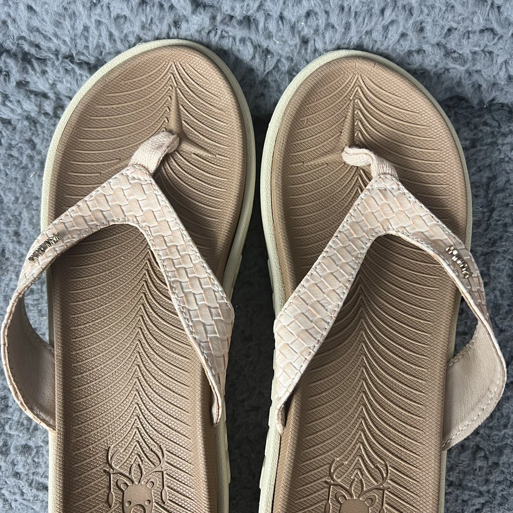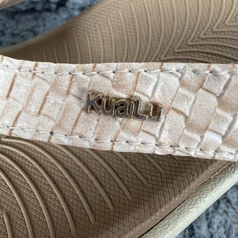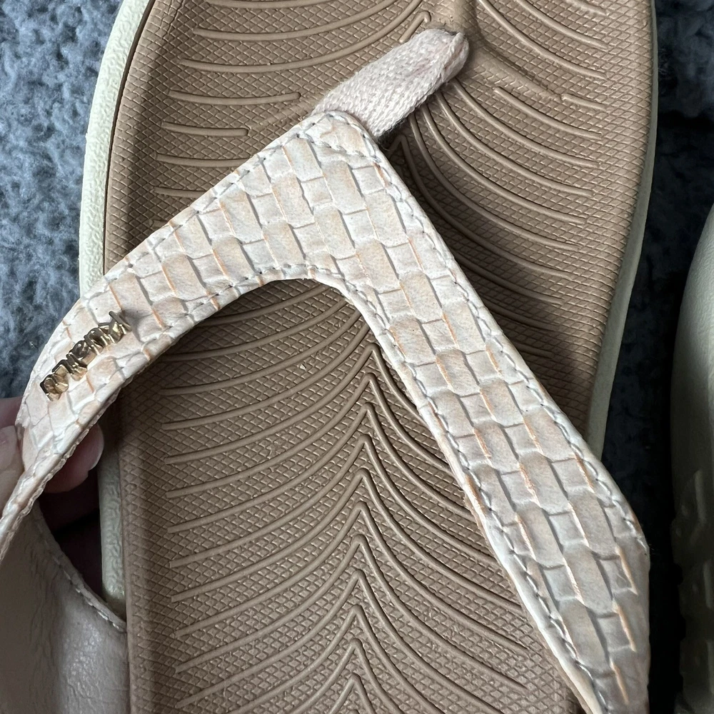 Elevate your casual style with these KuaiLu Women's Flip Flops. These sandals feature a slip-on closure, open toe, and thong strap type. The beige color and herringbone pattern type add a touch of sophistication to your outfit. These flip flops are perfect for all occasions, whether it's a day out with friends or a casual yoga session. The metal embellishment feature and rubber upper material make these sandals durable and comfortable to wear. The outsole and sole material are also made of rubber, providing extra cushioning. These flip flops are available in US size 7, UK size 5, and EU size 37. Buy now and experience the comfort and style of these KuaiLu Women's Flip Flops.