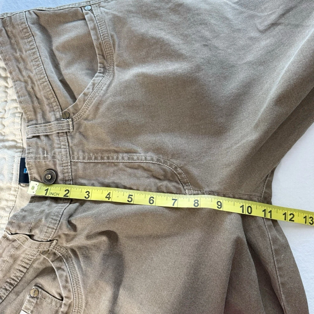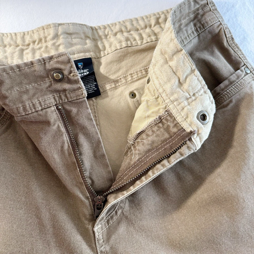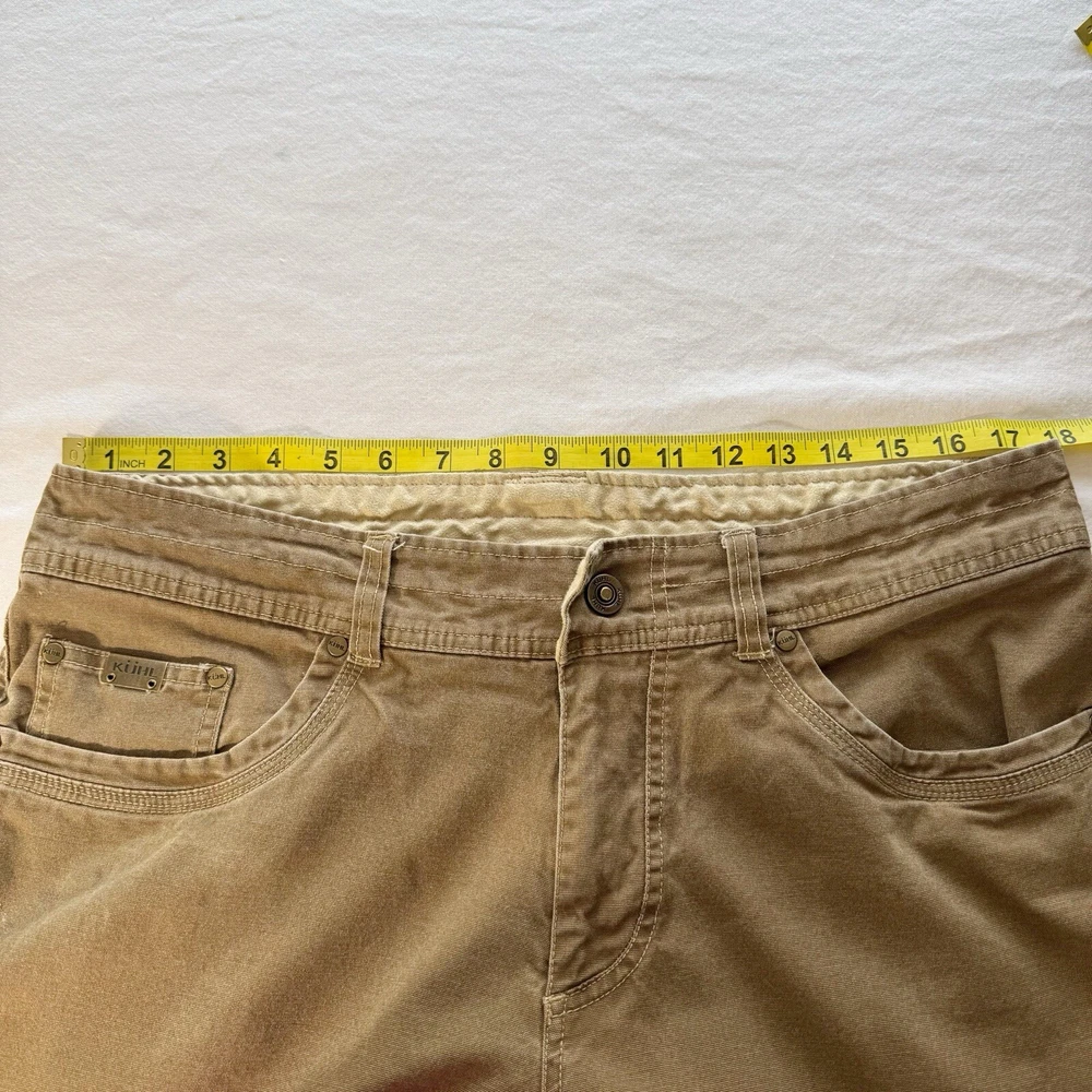 Rise: Mid (10-12 in) Inseam: 31 in Material: Cotton, Elastane Leg Style: Tapered Features: Comfort, Lightweight, Pockets, Stretch Department: Men Pattern: Solid Style: Chino Fabric Type: Canvas Size: 36 Brand: Kuhl Color: Brown Size Type: Regular Fit: Regular Closure: Snap, Zip Type: Pants Waist Size: 36 in