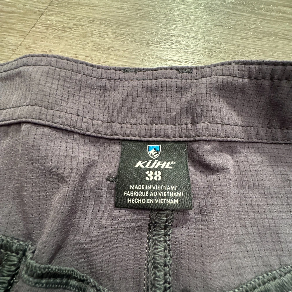 Personalize: No UPC: Does not apply Theme: Outdoor Inseam: 10 in Garment Care: Machine Washable Fit: Regular Color: Gray Size Type: Regular Closure: Button Features: Breathable, Easy Care, Lightweight, Moisture Wicking, Pockets, Quick Dry, Stretch Front Type: Flat Front Waist Size: 38 in Fabric Type: Moisture Wicking Pattern: Solid Size: 38 Season: Fall, Spring, Summer Department: Men Accents: Button, Logo, Zipper Brand: Kuhl Occasion: Casual, Travel, Workwear, Hiking Handmade: No Style: Hybrid Material: 100% Polyester MPN: 5180 Fabric Wash: Medium gtin13: Does not apply