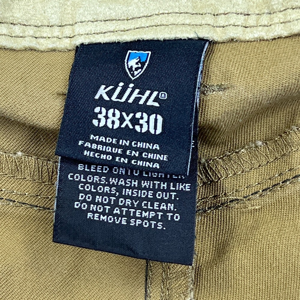 Pattern: Solid Style: Chino Accents: Button, Logo, Zipper Inseam: 30 in Front Type: Flat Front Waist Size: 38 in Occasion: Casual, Travel, Workwear Fabric Type: Canvas Garment Care: Machine Washable Type: Pants Vintage: No Season: Fall, Spring, Winter Seller Notes: “Good used condition with light wear” Country/Region of Manufacture: China Brand: Kuhl Leg Style: Straight Product Line: Kuhl Ryder Closure: Button, Zip Pocket Type: 5-Pocket Design, Slash Pocket Department: Men Fit: Regular Size: 38 MPN: 5016 Material: Cotton, Elasthane Color: Brown Features: Comfort, Easy Care, Pockets Personalize: No Theme: Outdoor, Hiking, Camping, Workwear, Durable Size Type: Regular