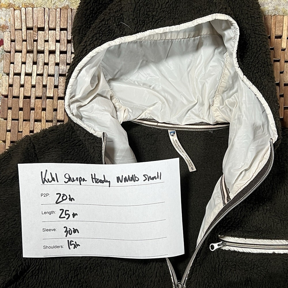 This Kuhl Skata Hoody Jacket is perfect for outdoor activities during the colder seasons. It features a full zip closure and a hood to keep you warm and protected from the elements. The jacket is made of polyester with a fleece fabric type and nylon lining material. The mid-length jacket has long sleeves and is designed with a regular fit. It comes in a solid brown color with a Kuhl logo accent on the zipper. The jacket also has multiple pockets for convenience. This Kuhl Skata Hoody Jacket is ideal for travel and casual occasions.