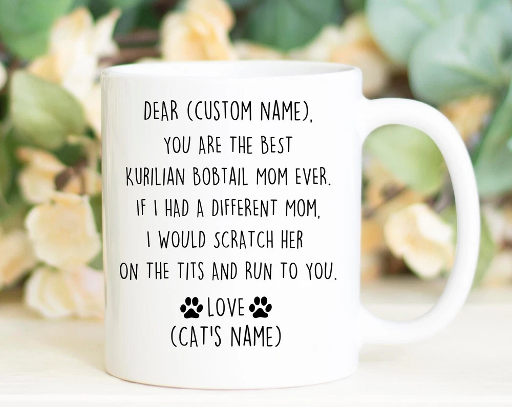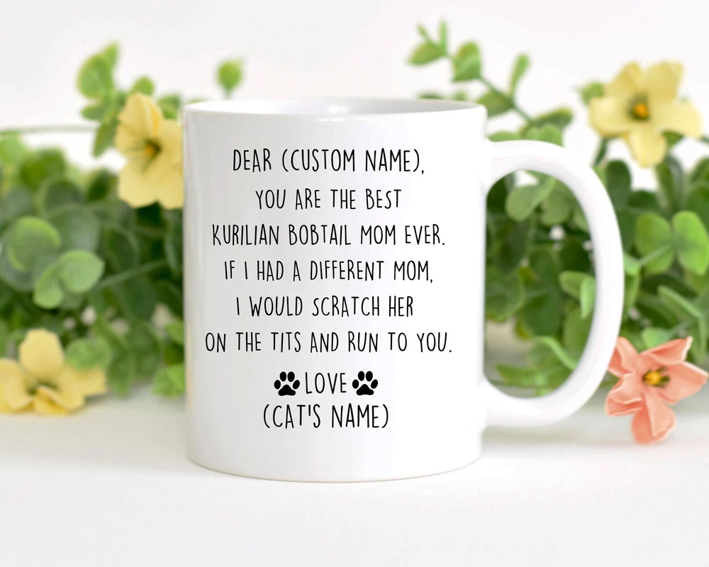 Kurilian Bobtail Mom Birthday Gift Kuril Cat Mom Christmas Gift Kuril Mom Valentine Gift Kuril Bobtail Mom Mug Kuril Mom Appreciation Product Details.. This high quality 11oz. ceramic white mug has a premium hard coat that provides crisp and vibrant color reproduction sure to last for years. Perfect for all hot & cold beverages. The highest quality printing possible is used. It will never fade no matter how many times you wash it. Material: 100% Ceramic. Print both sides. Dishwasher and Microwave Safe. High Gloss + Premium White Finish. Printed in the U.S.A. Personalized & Custom. We support personalized and custom mug to add custom, when placing an order, you can add notes to the "order note" in shipping address section. Also you can contact us directly via message. Shipping Info. Ready to ship in 1 to 2 business days, All products are made-to-order and proudly printed in the United States. Shipped by USPS and DHL, You will receive your order in 5-7 days. Replace & Refund. All products are defective during shipping broken, chipped will be replaced free of charge. You are not satisfied with the product, we will refund 100% money to you. If any other issues arise, please do not hesitate to message, we would be more than happy to assist you.