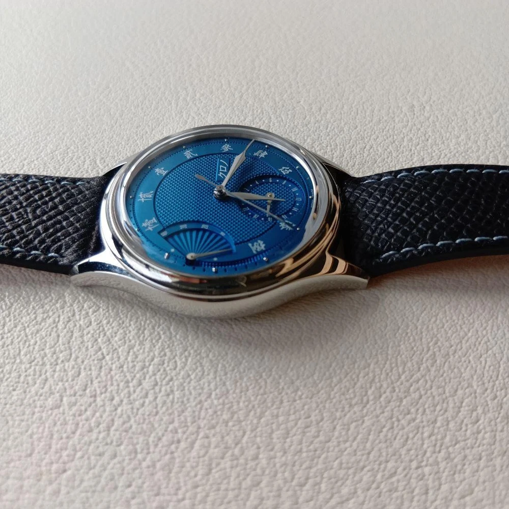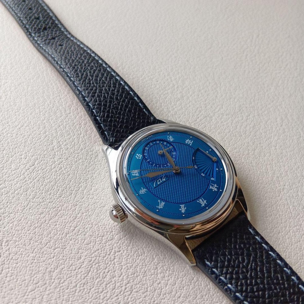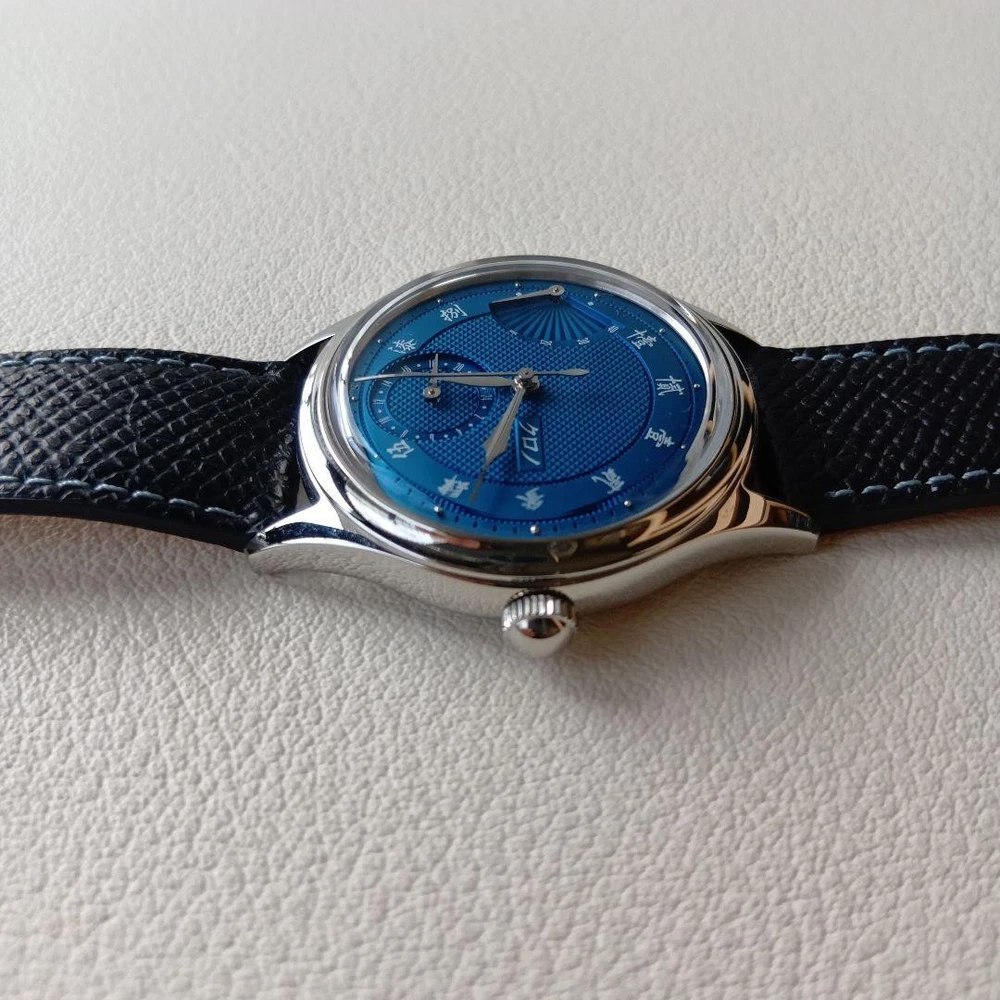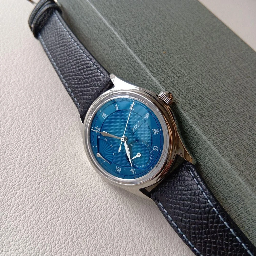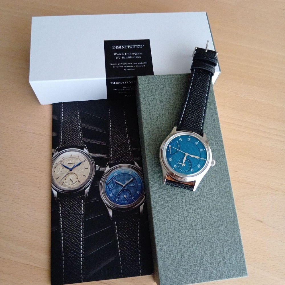 Description This is the Kurono Tokyo “Reserve de Marche – SENSU N.O.S.” , the brand’s first model featuring a power reserve indicator , released in October 2024 . This watch is distinguished by its beautiful guilloché bombé dial , inspired by traditional Japanese aesthetics. Two dial colors were released, and this listing is for the blue dial version (CP24BL) . The movement is a modified Japanese new-old-stock (N.O.S.) automatic caliber , specially adapted for this model, adding to its appeal among independent watch collectors. Condition Purchased new Worn fewer than 10 times Very good overall condition Not unused; please consider this a pre-owned watch Included Items Original watch Presentation box Original wrapping cloth Please note: The outer paper box is partially cut , as it was designed to be opened this way at the time of purchase Warranty card is not included due to personal information This is an excellent opportunity to acquire a recent but highly sought-after Kurono Tokyo model , ideal for collectors of independent Japanese watchmaking . Please review all photos carefully before purchasing. All our products are 100% authentic, so you can shop with confidence. Please add our store to your favorites! If you're looking for a Japanese product, please feel free to contact us. Shipping We ship via FedEx, DHL, and Japan Post. All shipments come with a tracking number, so you can order with confidence. You can check the status of your shipment at any time. We only ship to addresses registered with eBay. If you would like to ship to a different address, please change your address on eBay before placing your order. Payment We usually ship within 2-5 business days after confirming your payment. Delivery times may vary depending on the product, so please check the delivery time for the product you purchased. International Buyers - Please Note: Import duties, taxes, and fees are not included in the item price or shipping costs. These fees are the buyer's responsibility. Please check with your country's customs office prior to bidding/buying. These fees are normally collected by the shipping company and are in addition to any additional shipping charges incurred when you pick the item up. We do not mark items for less than their actual value or as "gifts." U.S. and international government regulations prohibit such behavior.