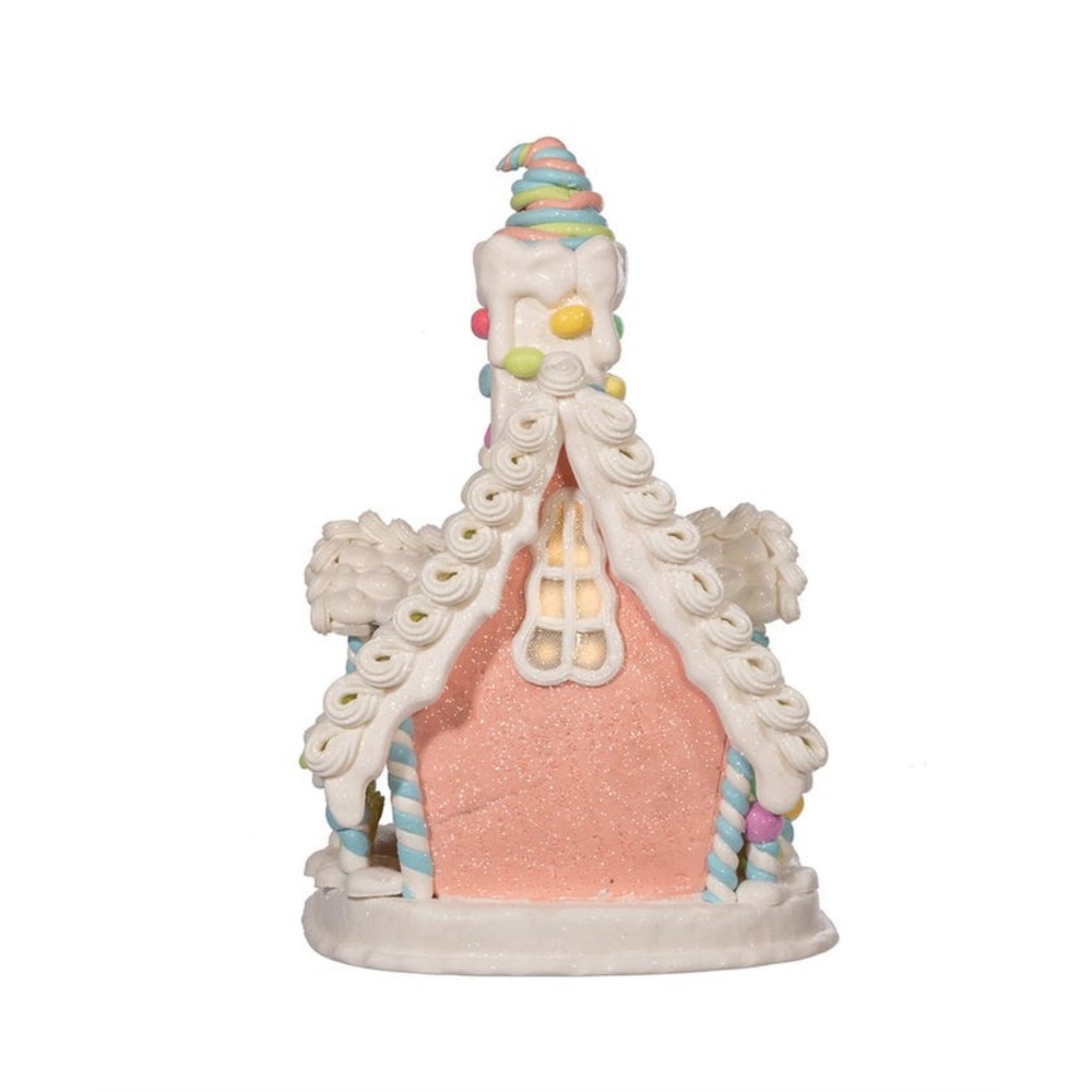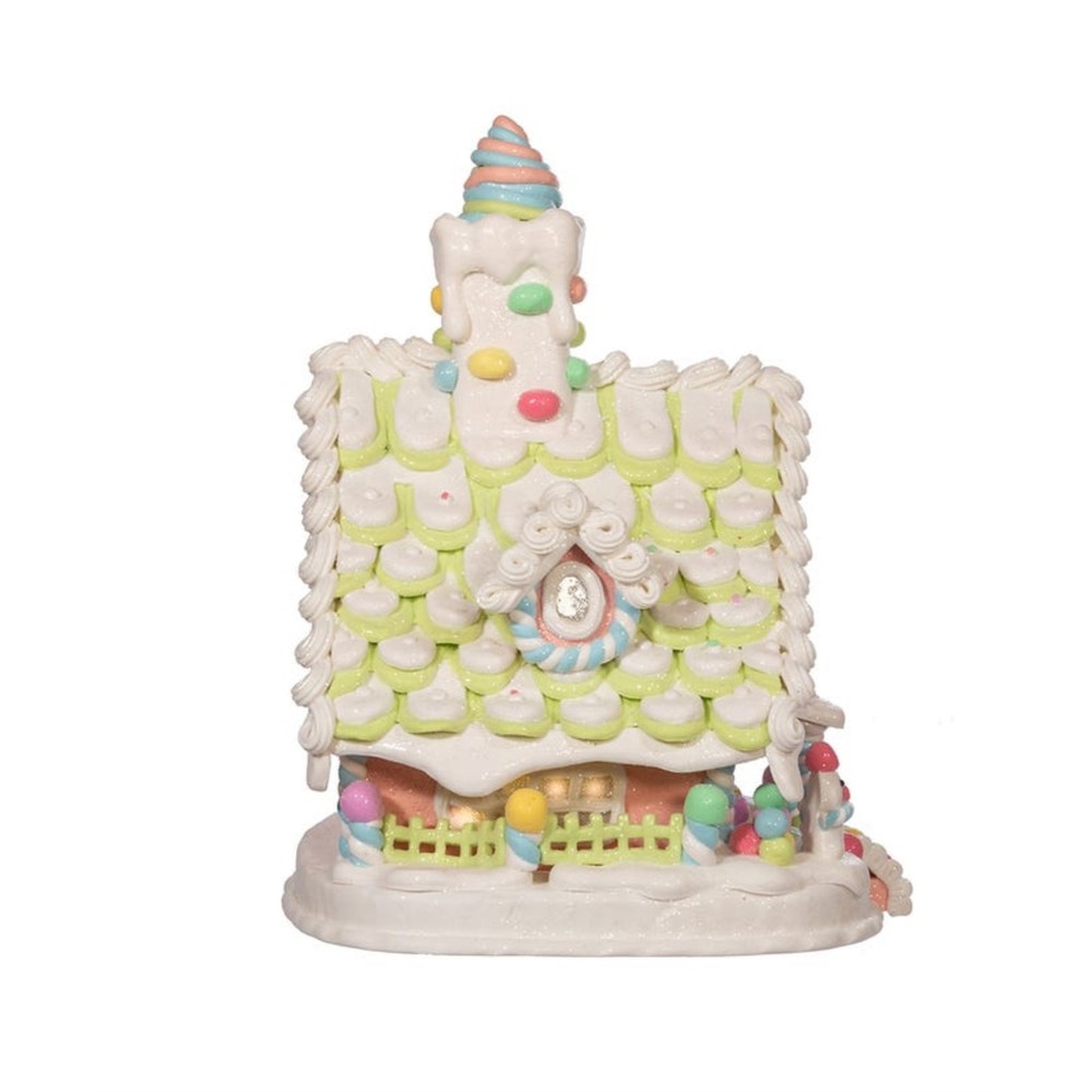 Kurt Adler Battery-Operated LED Light Up Pastel Gingerbread House, 12.5" PRODUCT DESCRIPTION This fun and whimsical table decoration from Kurt Adler is sure to add some life and color to your beautiful holiday display! Key Product Features LED Lit: Illuminated from within by a steady-on LED light Battery-operated: Uses 3 "AA" batteries (not included) Quality Craftsmanship: Made from colorful and shatterproof claydough Intricate Festive Display: Features a gingerbread house with all the candy ornaments and trimmings you find around the holidays. A Thoughtful Gift or Festive Accent: Ideal for collectors, fans, or anyone looking to elevate their seasonal décor Add a touch of sweetness and warmth to your holiday decor with Kurt Adler's Battery-Operated LED Light Up Pastel Gingerbread House. This charming little house features soft pastel colors, intricate details, and a glowing LED light that brings it to life with a cozy, festive glow. Perfect for displaying on mantels, tables, or windowsills, this gingerbread house creates a magical atmosphere that captures the spirit of the season. Its battery-operated design makes it easy to place anywhere without the need for outlets, allowing for flexible placement throughout your home.