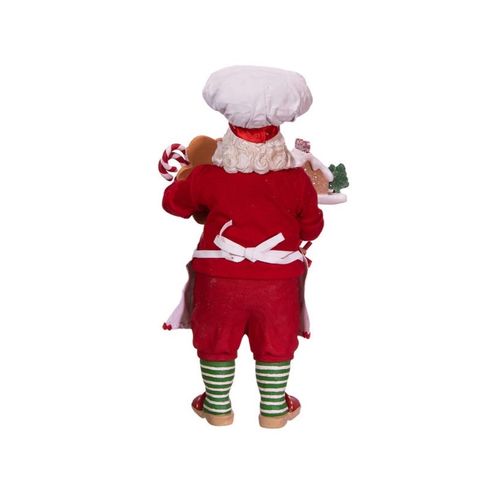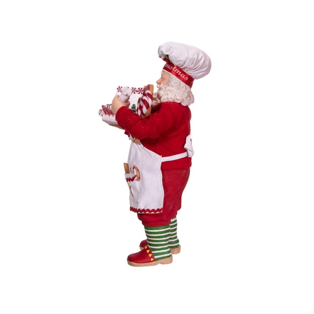 Kurt Adler Fabriché™ Gingerbread Santa Standing Christmas Figurine, 10.5" PRODUCT DESCRIPTION Add some festively sweet Christmas vibes to your holiday decor with this Chef Santa from Kurt Adler! Key Product Features Great for Collectors: Part of the Kurt Adler Fabriché™ collection Festive Baking Theme: Features Santa dressed as a holiday baker holding a gingerbread house and piping bag High-Quality Craftsmanship: Made from fabric mache, PVC, and polyester for durability and fine detail Display-Ready Size: Stands 10.5 inches tall, great as a seasonal centerpiece or collectible figurine Holiday Décor Favorite: Perfect for kitchen counters, mantels, dessert tables, or festive gifting Celebrate the baker in your life with this Kurt Adler Fabriché™ Gingerbread Chef Santa! This 10.5" Santa features Santa wearing an apron decorated with gingerbread men and a chef's hat with a "Merry Christmas" ribbon border. Santa is carrying a decorated gingerbread house and candy canes.