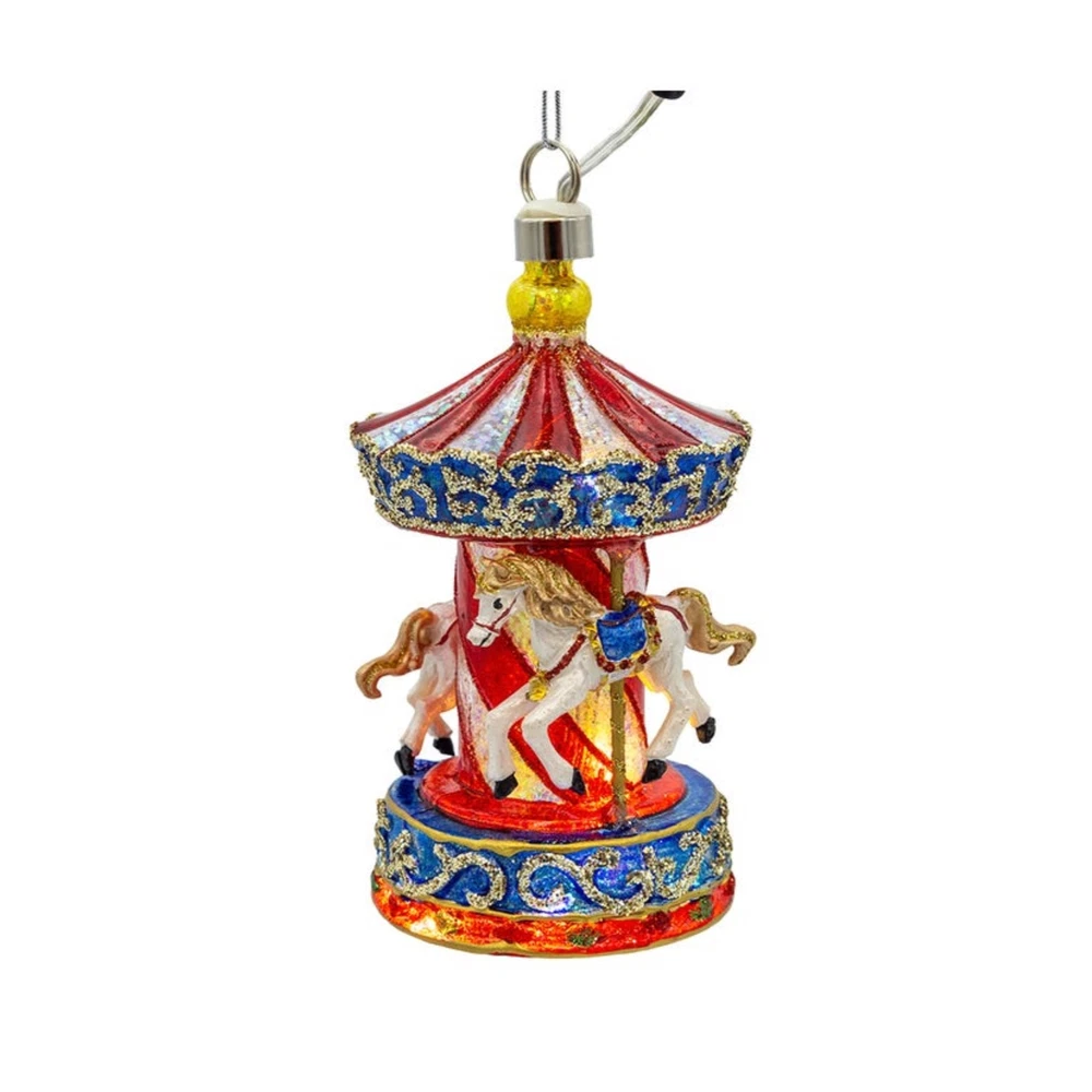 Kurt Adler Pre-lit Glass Ornament, Warm White LED's, Carousel