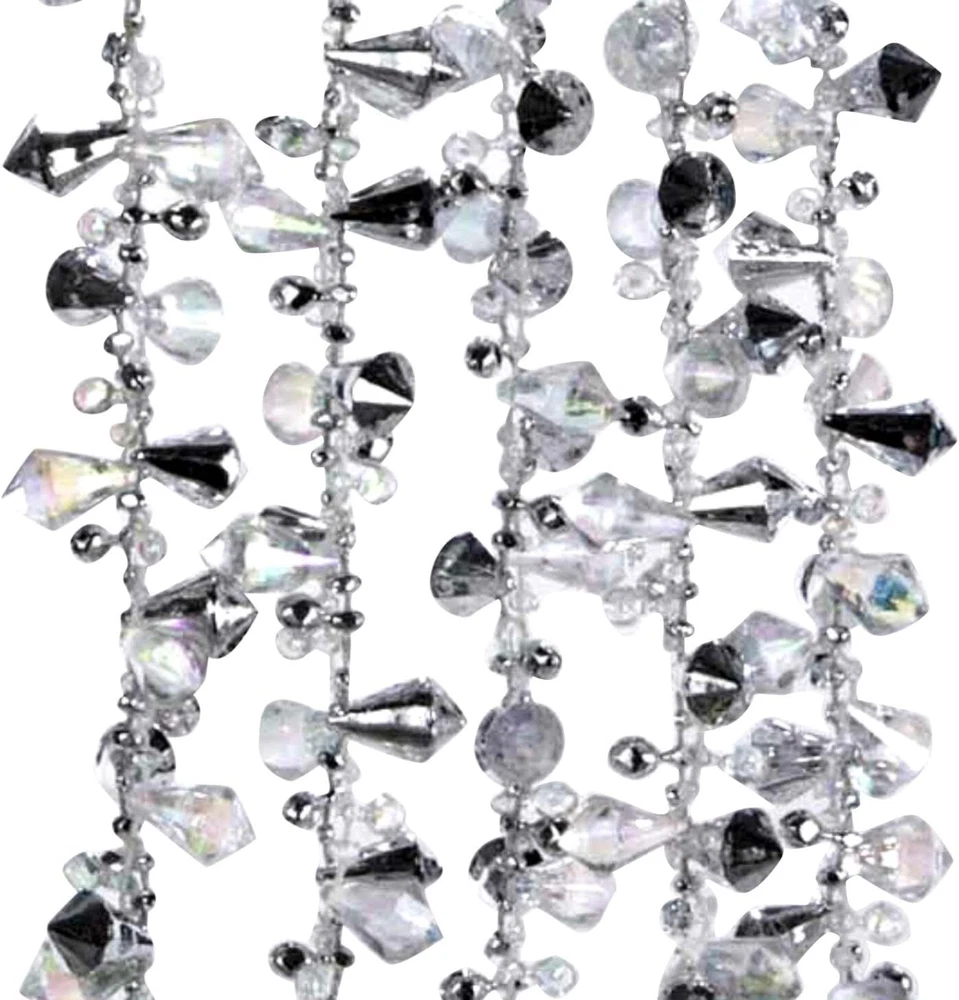 Kurt S. Adler Iridescent and Silver Beaded Garland 9 Feet Long Product Details Is Artificial Garland: Yes Is Lighted: No Shape: Round Manufacturer: Kurt S Adler Product Dimensions: 10 x 7.4 x 10.5 inches Item Weight: 2.4 ounces Item model number: No Model Is Discontinued By Manufacturer: No Number of pieces: 1 Batteries required: No Brand: Kurt Adler Color: Silver Material: Acrylic Item Length: 9 Feet Item Weight: 0.15 Pounds Measures 108 x 1 inches Made of acrylic, imported . Iridescent and Silver Beaded Garland. Made of plastic. Item Size: 9-feet long
