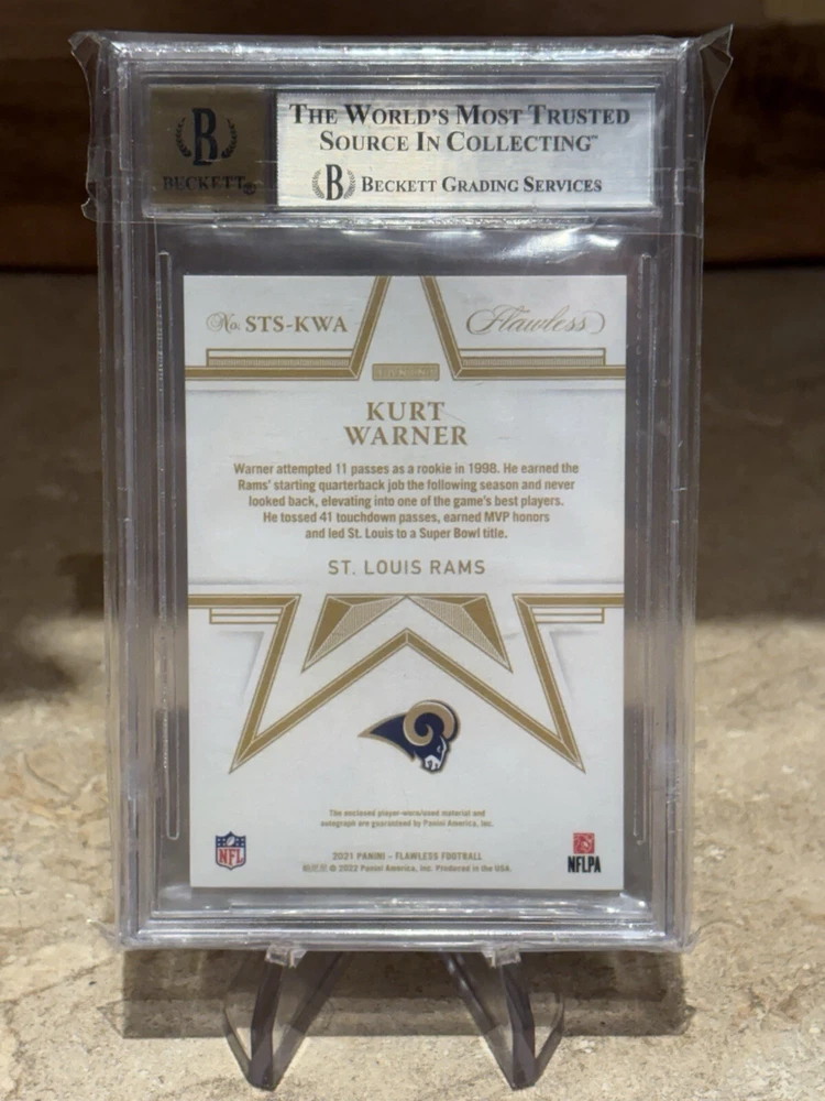 Kurt Warner 2021 Game Worn Patch Auto Flawless /20 BGS 8.5 Auto 10