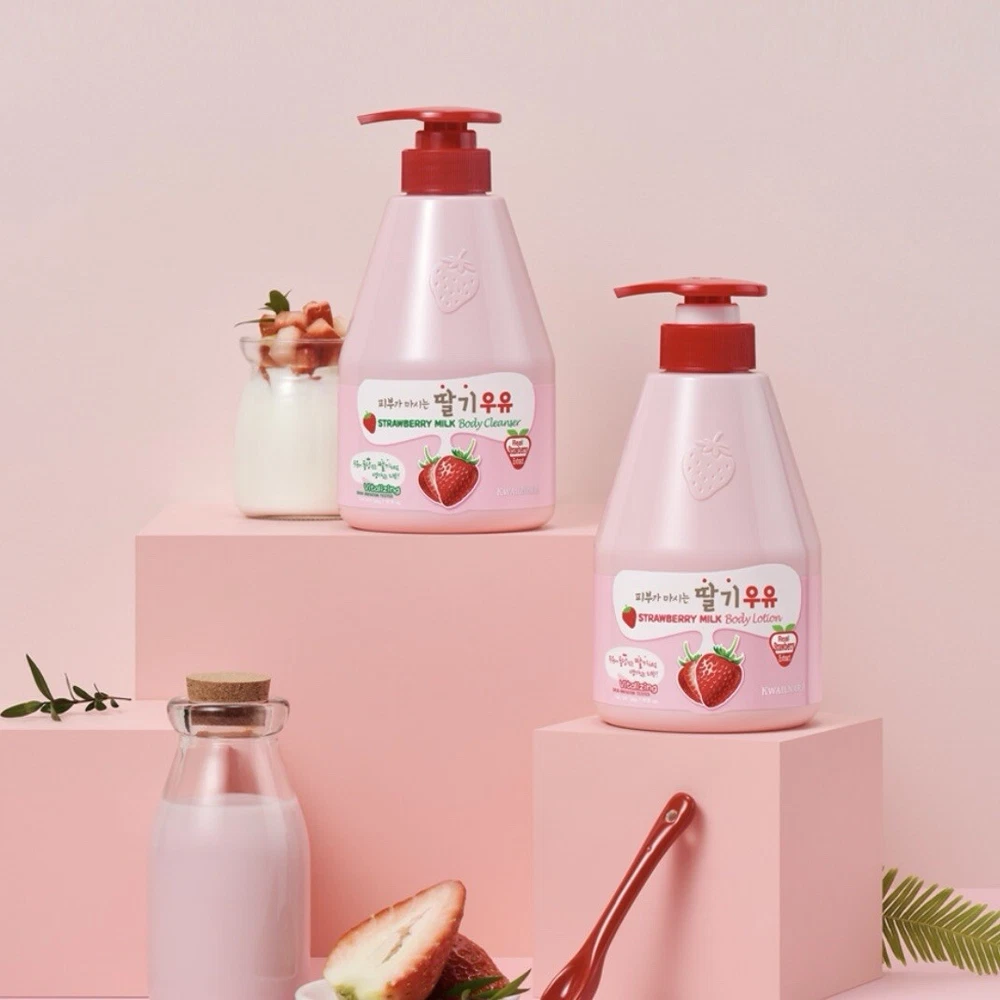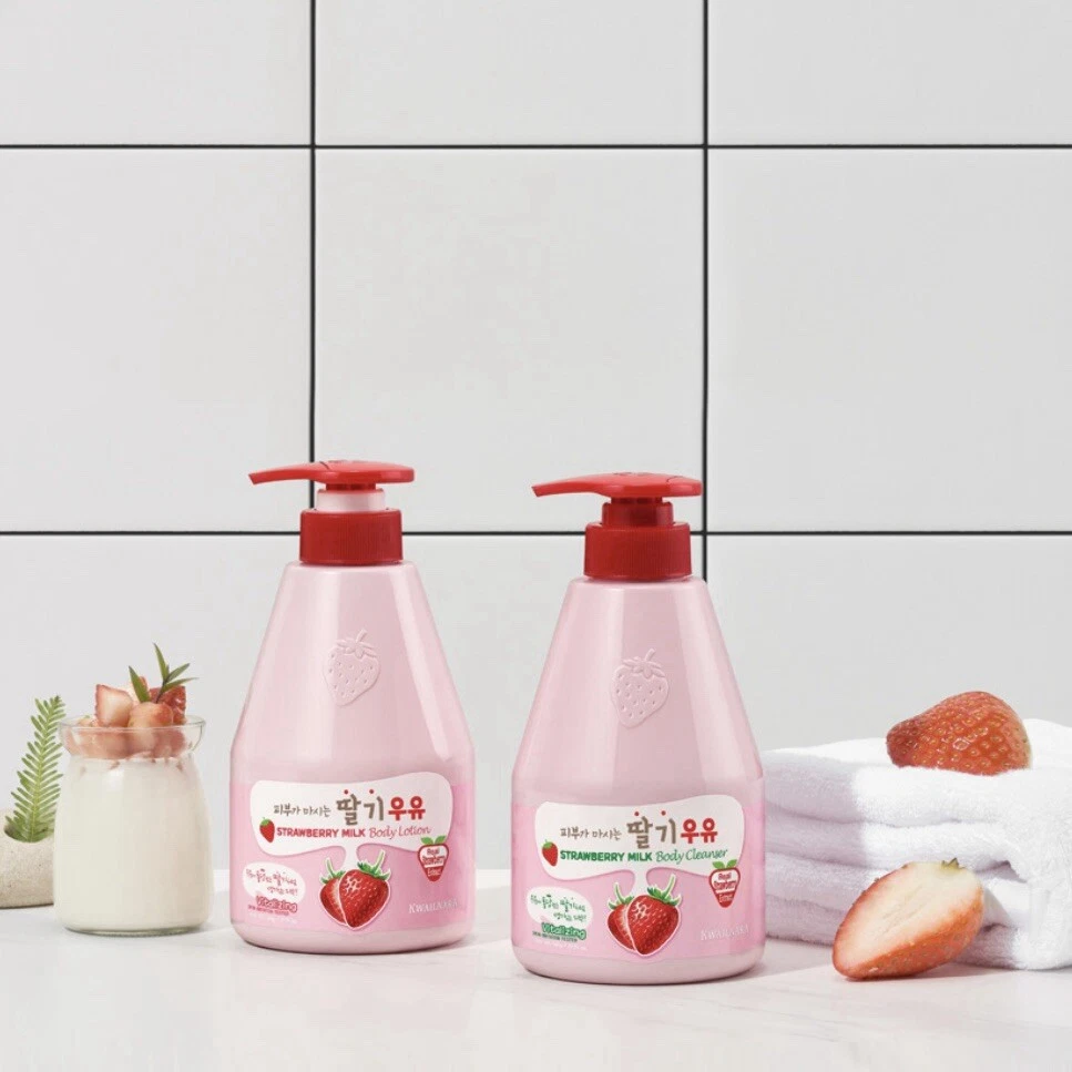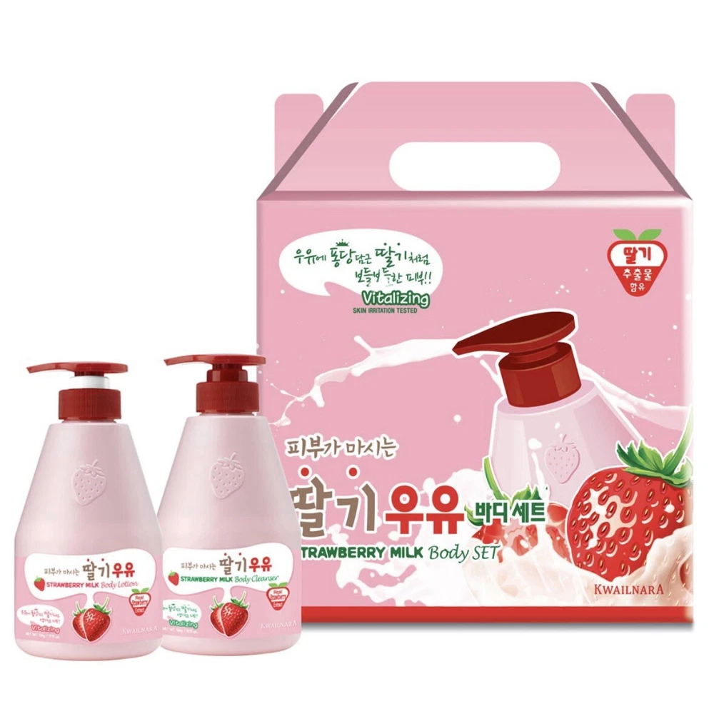 Kwailnara Strawberry Milk Body Lotion Body Wash Gift Set 560mlx2 Gift For Woman Body lotion 560ml Body wash/shower gel 560ml