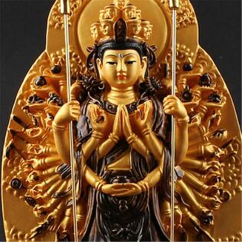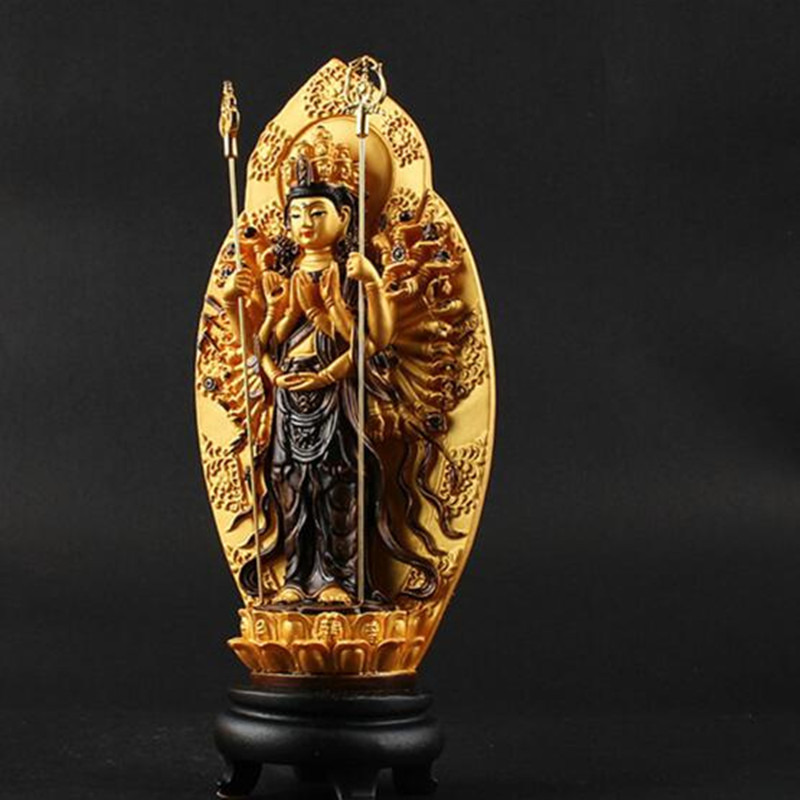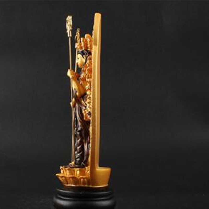 Feature : 1. The instruments on both sides of Guanyin are very gold-plated and very delicate. 2. The style is unique and can bring good luck. Specification: 1. Hand-painted colorful thousand hands Guanyin size: height 19cm Bottom diameter 5.5cm The widest 8.2cm Material: Resin Applicable to: home, Buddhist temple decoration ornaments Package Included: 1x Thousand-Hand Kwan-yin Buddha Decoration