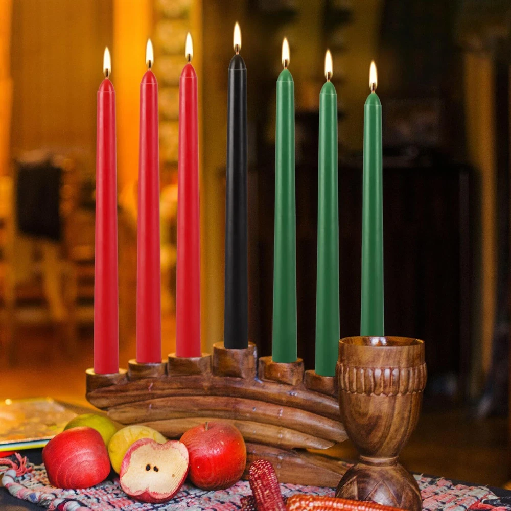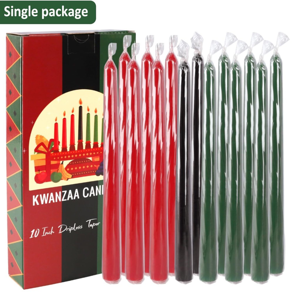 Kwanzaa Taper Candles Set of 14-10 Inch Tall Candle Stick - Dripless and Smokeless - Mishumaa Saba Candle - 6 Red, 6 Green, 2 Black - 7 Hour Packaging: The 14 pack Kwanzaa candle set is 6 red, 6 green, and 2 black candles, each smokeless candle represents a night of Kwanzaa and symbolizes the 7 principles of Kwanzaa. Size: Each taper candle is 10 inches long and about 0.87 inches in diameter at the base, fits most candle holders, these candles burn for a long time, about 7-7.5 hours, no dripping wax. Kwanzaa Candles: The taper candle set is beautifully designed and brightly coloured, with the red, green and black colours reflecting the core values of Kwanzaa and representing the seven principles of Kwanzaa Clean Burning: These candles burn cleanly, don't drip or make a mess, and don't produce scent, which is great for people with scent allergies or sensitivities. Ideal Decoration: You can place these candles in fireplaces, mantelpieces, farmhouses, bathrooms, dining rooms, kitchens, living rooms, bedrooms, balconies, windows, etc., which can create a warm glow in any room, and the tall and elegant shapes are suitable for use as table centrepieces on various important occasions such as Halloween, Christmas Eve, Thanksgiving, Kwanzaa and so on. Packaging: Set of 14 Kwanzaa candles set includes 6 red, 6 green, and 2 black candles, burns long, 10 inch candles fit most standard candle holders. Shipping We offer FREE shipping on all orders! We ship within Three business days of payment, usually sooner. We use a selection of shipping services such as UPS, FedEx, USPS etc. We only ship to the lower 48 states, no APO/FPO addresses or PO Boxes allowed. Local pickups and combined shipping options are not provided at this time. International buyers – please note: Import duties, taxes, and charges aren't included in the item price or postage cost. These charges are the buyer's responsibility. Please check with your country's customs office to determine what these additional costs will be prior to bidding or buying. Order Cancellation Policy * Order Cancellation Policy ** You can return a product for up to 30 days from the date you purchased it. 1. The seller reserves the right to cancel the special case only due to eBay cancellation fee. 2. The decision of seller is the final. 3. The seller will respond to the cancellation request within 2 business days. Please wait for the result of cancellation. 4. In case the cancellation is not completed by some reasons, the buyer can follow the options below to get the refund. 4.1 The buyer can reject the item when it arrives. 4.2 The buyer can send the item back to the seller within 30 days If the buyer receives item (USA Shipment ONLY). The seller will provide the FREE return label to the buyer when the buyer opens " Return Item" case on eBay by using the reason as "Change my mind" ONLY. 5. When buyer has placed the order. The order will be processed and completed by automatic warehouse system within 5 minutes. In case that buyer sends the cancellation request after 5 minutes of placing the order, the request will be rejected. **Sending direct message to cancel the order is not allowed for every case.* Return Policy - If buyer would like to return the items for refund or replacement, please CONTACT SELLER to receive the free return label from seller. The refund or replacement will be processed with the tracking number of return label which is provided by seller only. The other ways of return which are not approved by seller will not be processed for the refund or replacement. Return You can return a product for up to 30 days from the date you purchased it. Any product you return must be in the same condition you received it and in the original packaging. Please keep the receipt. Payment We accept payment by any of the following methods: eBay Payments Please pay as soon as possible after winning an auction, as that will allow us to post your item to you sooner! Feedback Customer satisfaction is very important to us. If you have any problem with your order, please contact us and we will do our best to make you satisfied. Contact Us If you have any queries, please contact us via ebay. We usually respond within 24 hours on weekdays. Please visit our eBay store to check out other items for sale! Thank you for shopping at our store.