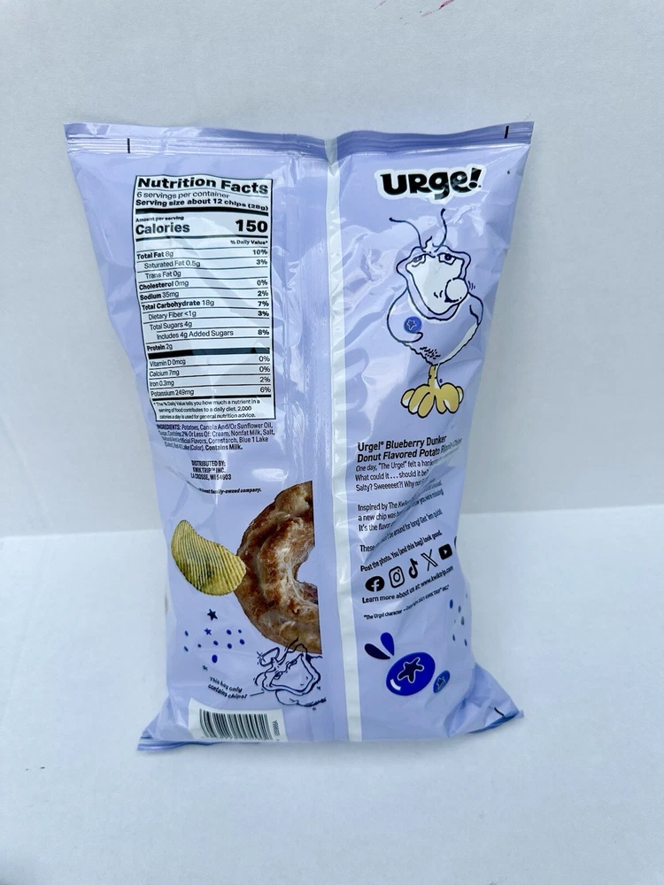 Kwik Trip - URGE! Blueberry Dunker Donut Potato Ripple Chips Includes: 1 Bag (6 oz) 6 servings per bag. Had a limited summer run, no longer available / discontinued ** EXPIRATION JULY 30, 2024 One Day Ship Smoke Free Home