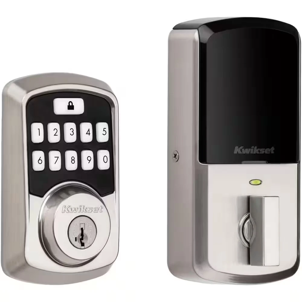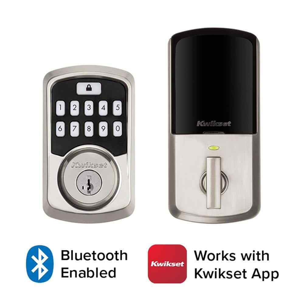 Aura Bluetooth Smart Lock is a keyless entry electronic deadbolt featuring SmartKey. Using the Kwikset App within Bluetooth range, you can lock/unlock the Aura Smart Lock and program up to 250 user access codes that can be scheduled and customized. The crisp, clean appearance of the Satin Nickel finish adds to the overall look of the product and brings a modern feel. Complete your entryway refresh with a matching Kwikset door lever or handleset. Highlights Control with your phone: use your phone to lock/unlock, share guest access, monitor activity at the door, and so much more while in Bluetooth range of the lock Share access with guests: Backlit touchscreen with support for up to 250 access codes. Use the Kwikset app to schedule access windows or share one-time codes with guests Monitor your home: view history log, receive activity notifications, and monitor user access while using the Kwikset app in Bluetooth range of the lock Track All Lock Activity: The Kwikset app's Lock Activity screen conveniently displays all of Aura's activity including actions such as locking, unlocking, low battery warning, manual key-based entries, and other alerts Auto-Lock Security: Set a duration for your door to lock automatically after entry or exit, perfect for keeping your hands free and getting in and out in a hurry Easy Install: Do it yourself, installs in minutes with just a screwdriver, fits doors between 1-3/8 in. and 1-3/4 in. thick Product Warranty: Locks and handles have a lifetime mechanical and finish warranty, and a 1 year electronics warranty; see Kwikset warranty for full details Requires 4 AA batteries, included Easily installs in minutes with just a screwdriver