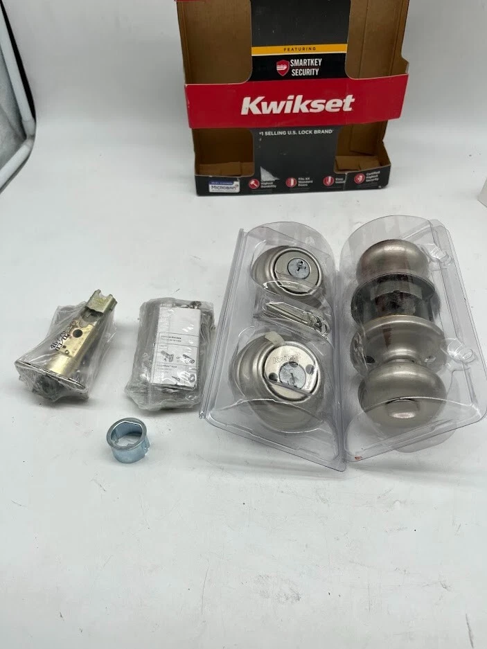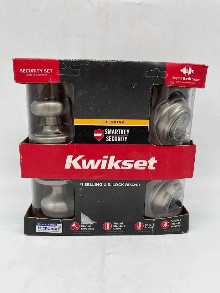 This is a NEW OPEN BOX item. The Kwikset Juno Combo Pack offers superior security and a timeless design for your home. Featuring both a keyed entry door knob and a single-cylinder deadbolt , this set provides two layers of protection . The Satin Nickel finish enhances any door with its clean, modern look, while SmartKey Security technology allows for quick and easy re-keying in seconds—perfect for new homeowners or key replacements. Key Features: Combo Pack for Extra Security: Includes both a deadbolt and a keyed entry knob for double-layer protection. SmartKey Security: Easily re-key the lock yourself in seconds , eliminating the need for a locksmith. Solid Metal Knob: Heavy-duty, durable construction for a sturdy feel and enhanced security . Traditional Design: Classic elegance with a modern Satin Nickel finish to complement various home styles. Fits Standard Doors: Works with 1-3/8" to 1-3/4" thick doors; adjustable latch fits 2-3/8" or 2-3/4" backsets. Quick & Easy Installation: Installs in minutes with just a screwdriver —no need for professional tools. Certified Quality: Grade 2 BHMA certified for security, durability, and finish, ensuring resistance to forced entry . Upgrade your home security with the Kwikset Juno Keyed Entry Door Knob and Deadbolt Combo , a trusted, high-quality solution that blends security with style. We take great care to inspect all items and ensure they are accurately described. Should you have any issues with your purchase, please let us know immediately. We are committed to resolving any concerns promptly and to your satisfaction. Our small business truly appreciates your patronage.