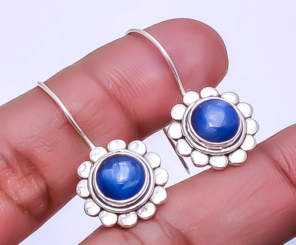 Theme Beauty Main Stone Depth As Seen in Picture Main Stone Length As Seen in Picture Main Stone Width As Seen in Picture Seller Warranty Yes Shape As Seen in Picture SKU E_9325_112_10 Main Stone Cut Type Cabochon Main Stone Size 8X8 Mm Antique Yes Handmade Yes Type Earring Style Drop/Dangle Metal Sterling Silver Metal Purity 925 Parts Per 1000 Base Metal Sterling Silver Total Carat Weight 21.5 Main Stone Kyanit Main Stone Creation Natural Main Stone Shape Round Main Stone Color Blue Main Stone Treatment Natural Material Gemstone, Stone Number of Gemstones 2 Item Length 1.17 Features Engraved, Nickel-Free, Handcrafted Ear Area Lobe Brand Unbranded Country/Region of Manufacture India Country of Origin United States Color As Seen in Picture Diamond Clarity Grade Not Applicable Number of Diamonds As Seen in Picture Item Diameter As Seen in Picture Gemstone Clarity Grade Opaque Diamond Color Grade Not Applicable Customized No Colored Diamond Intensity Not Applicable Certification 100% Genuine Guaranteed Setting Style Bezel Occasion Christmas, Birthday, Anniversary, Engagement, Wedding, Valen Shipping & Handling - Charge - 1st item-5.90 And Additional item-1.90 Handling Time - 1 Days . Delivery Time - 2 TO 3 DAYS. Shipping Service - USPS First Class Package 2 -3 Days. Returns - 1.We offer a 100% Money Back Guarantee minus shipping for 30 days after receiving the Item / item's. 2..The item must not be altered or damaged in any way shape or form. 3.Upon receiving these items your payment will be refunded. 4.Email us for return instructions before sending merchandise back. 5.Please allow up to 1 business day for all returns to receive credit. 6.Sizing does not affect the return policy. Payment - We accept PayPal for Payment ,should made with in 14 days once buying or winning done , in case of late information expected .