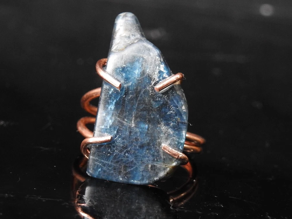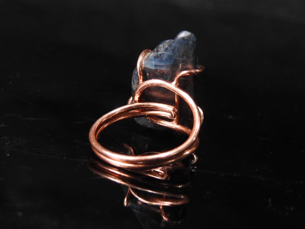 Kyanite Wire Wrapped Adjustable Copper Ring with Raw Stone for Valentine Gift