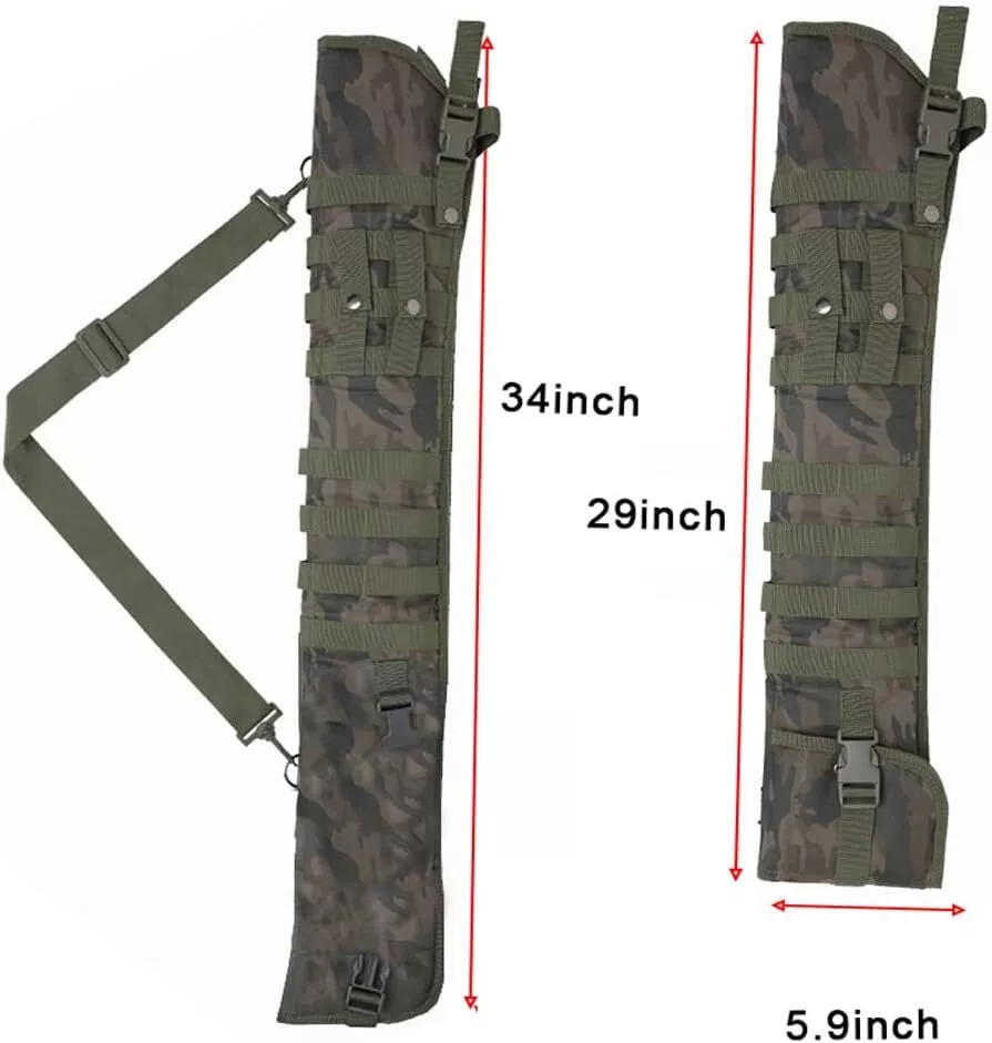 Products Photo Product Description Product Description Product name: Tactical Rifle Scabbard Specification: 34inchx5.9inch Material:600D high strength Oxford cloth Weight:0.4kg The tactical Rifle Scabbard is designed for shoulder carry or modular mounting. Webbing on both side with four detachable PALS straps for ambidextrous usage. Six D-ring locations for attaching the padded shoulder sling to for multiple carry options or preferences. Removable retention strap with quick-release buckle. Padding around the whole scabbard to protect your rifle. Webbing on both side with four detachable PALS straps for ambidextrous usage Six D-ring locations for attaching the padded shoulder sling to for multiple carry options or preferences Removable retention strap with quick-release buckle. Padding around the whole scabbard to protect your rifle Perfect for outdoor war game activities. Product Details Return Policy About Feadback Return Policy 1. Customer satisfaction is our top goal. We believe our items are so outstanding. All products are quality checked. They are new and in good condition when shipped to our customers. We are convinced you will be happy with your Purchase. 2. If product is defective or damage upon arrival, or wrong product shipped, please contact us immediately. Returns accepted within 14 days of delivery date and item must be in original new condition, not worn or altered in any way with attached tags & wrap. Otherwise deal is final. Return shipping must be paid by buyer. 3. Please contact us first if you have any problems/questions/concerns. We will be happy to resolve any issues you may have in a cordial and friendly manner. 4. We appreciate your Postive Feedback, and will do the same in return. DO NOT leave negative feedback without first communication with us. Please allow max 2 business days for us to response. About Feadback When you satisfied with our product and services please leave us positive feedback. If a problem occurs, contact us immediately with any email request. Just contact us using the " Ask the seller a question" link on eBay.