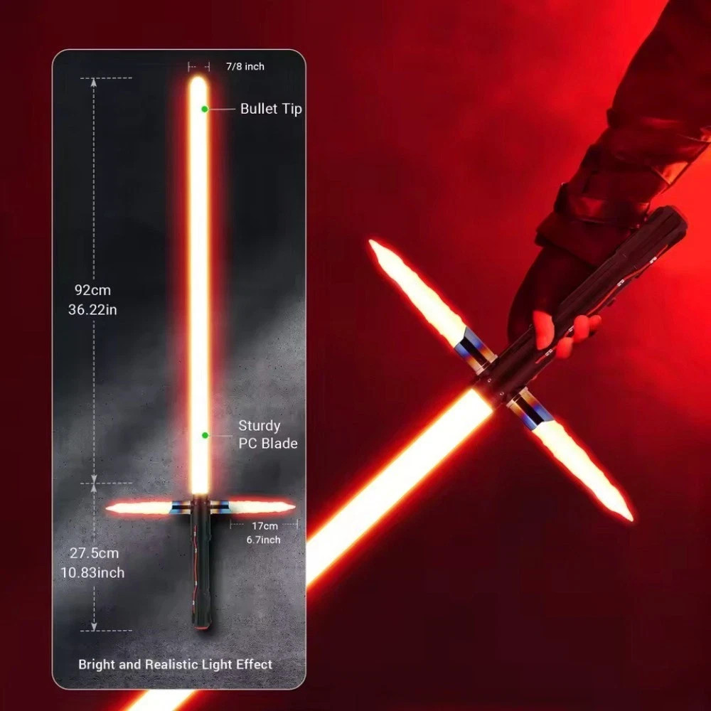 THE DELIVERY FOR THIS ITEM IS ~1 WEEK. FULL TRACKING AVAILABLE. Oversized Parcel Tracked Delivery with Customs included in purchase price. Full customer service provided, any questions please don't hesitate to ask. Strong Polycarbonate Blade; Duel Ready! Brand Affiliated | Quality Assurance Variant XRGB 3.0 Xeno3.0Pixel Technology Type Single high‑power LED in the hilt Advanced pixel‑blade system with LED strip inside blade Brightness Bright but less intense than pixel blades Extremely bright, screen‑accurate glow Smooth Swing Good motion response but less dynamic Very fluid, premium motion response Effects Basic ignition and clash effects Blaster deflects, unstable blade, ignition styles Sound Quality Standard sound fonts, simpler profiles High‑fidelity sound fonts. Comes with USB to add more sound fonts Colour Options Full RGB but fewer advanced effects Full spectrum, highly customizable Material Type Aluminium, Cardboard, Foam, Plastic Included Components Blade, Hilt, Screws and Hexagonal Tool, USB-C Charging Cable, User Manual The Kylo Ren Lightsaber is a highly detailed collectable item inspired by the iconic weapon wielded by the character in the Star Wars franchise. This unique lightsaber features app control, allowing for smooth swing motion and a flash of light on clash. Made in China, this officially licensed replica is a must-have for any science fiction collector or Star Wars fan. Bring the power of the dark side into your own home with this impressive and authentic-looking lightsaber. Smooth Swing Technology – Advanced motion‑synchronized sound delivers seamless audio with every swing, spin, and clash, making duels feel cinematic. App‑Controlled Customization – Connect via Bluetooth to the companion app for full control of colours, sound fonts, and settings. Personalize your lightsaber experience with just a tap. Customizable Blade Colours – Choose from classic blue, green, fiery red, calming purple, and more. Includes infinite colour‑changing mode for endless personalization. Immersive Sound Effects – Upgraded sound module and motion sensor recreate the iconic hums, clashes, and battle sounds fans love — perfect for duelling or display. Rechargeable & Portable – Powered by a long‑lasting lithium‑ion battery, easily recharged via USB‑C (cable included). No need for disposable batteries. Flash on Clash Feature – Dynamic bursts of light at every strike emulate cinematic sparks, immersing you in the thrill of battle.