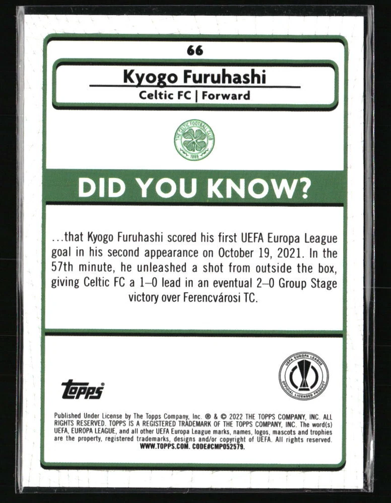 Kyogo Furuhasi #2021 Merlin UEFA Champions League #66 Soccer Card
