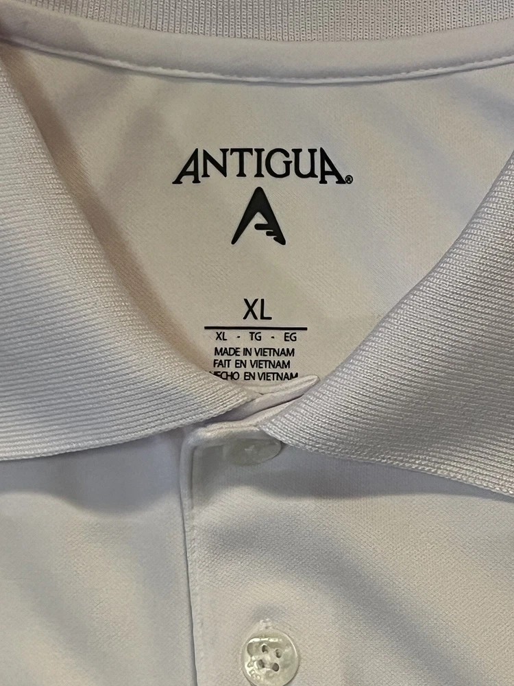 Type: Polo Neckline: Collared Material: 100% Polyester, Polyester Product Line: Antigua Polo Shirt Fit: Relaxed Closure: Pullover - Button Performance/Activity: Golf, School, Soccer, Tennis, Walking Garment Care: Machine Washable Character: David Beckham Sleeve Length: Short Sleeve Size: XL Size Type: Regular Theme: City, Classic, College, Dad, Logo, Preppy, School, Sports, Travel & Places, University, USA, MLS, Soccer Fabric Wash: Light Features: All Seasons, Easy Care Department: Men Accents: Embroidered, Logo Pattern: Solid Model: Antigua Polo Fabric Type: Knit Season: Fall, Spring, Summer, Winter Country/Region of Manufacture: Vietnam Color: White Brand: Antigua