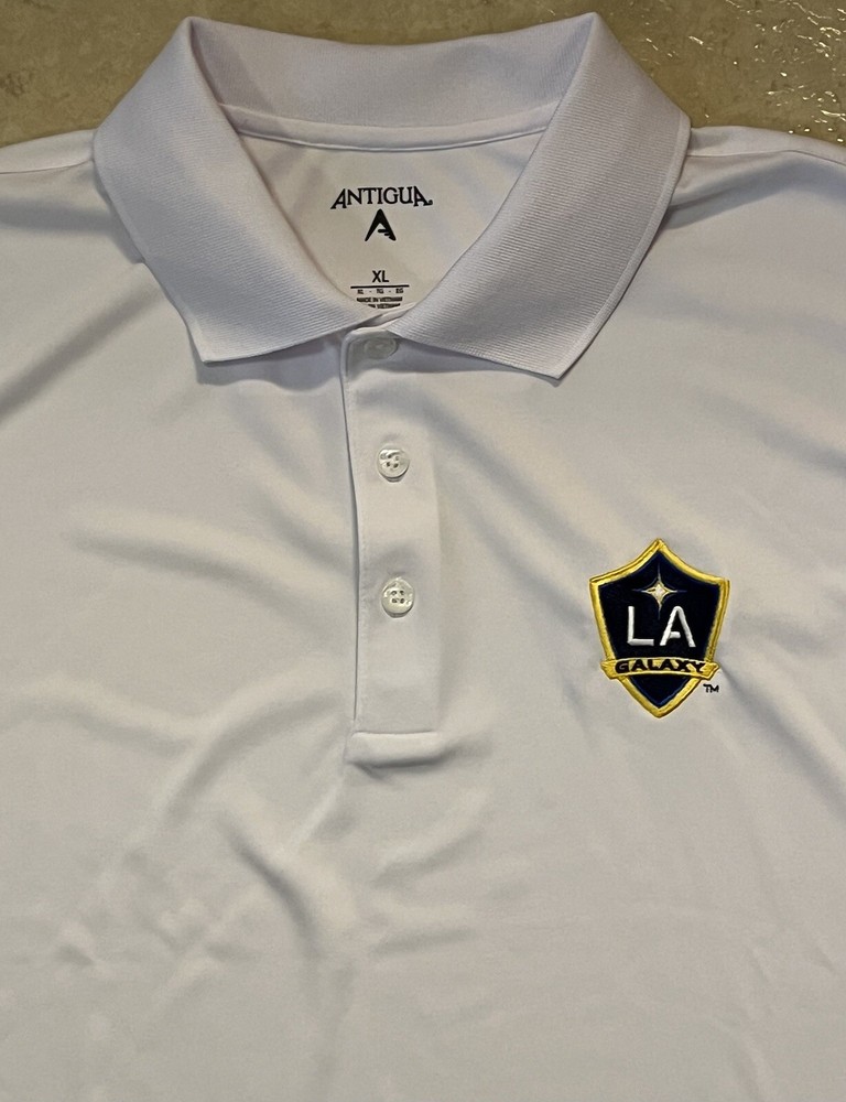 Los Angeles LA Galaxy Soccer Antigua Polo Golf Shirt Short Sleeve White Logo XL ✅ Good Condition! ✅ Look at all photos to see the condition of the item. Please feel free to ask any questions you may have. ✅ Ready to ship!