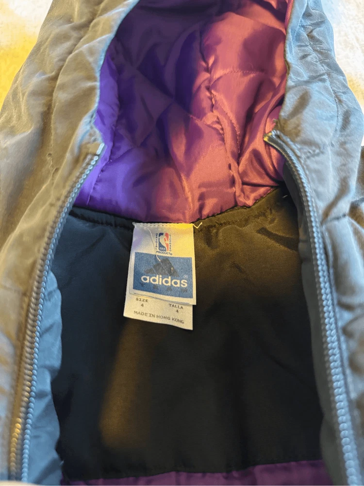 LA Lakers Size 4T Toddler Adidas Jacket Purple Black Angeles Mamba Kobe Bryant. Used jacket but in great conditions. Due to lighting color may vary. Smoke free home. Please look at measurements on pictures before purchasing. I tried to get the best pictures to show the condition of the item. There may be flaws that I did not capture in picture or am unaware of. Once you have purchased item NO RETURNS OR NO EXCHANGES. Any further questions or offers contact me. Thank you and God Bless. Reasonable offers welcome. If item is bought on Friday or the weekend I will be shipping out item the following business day.