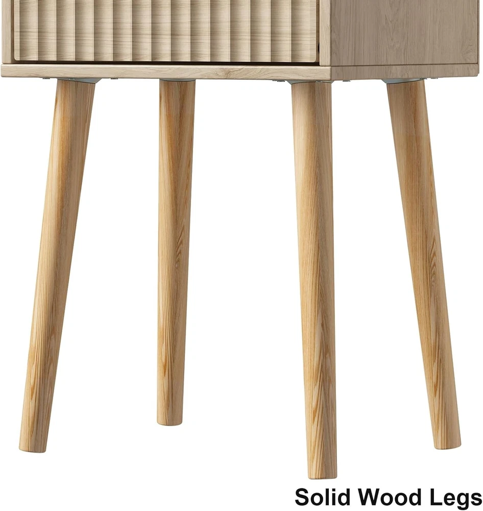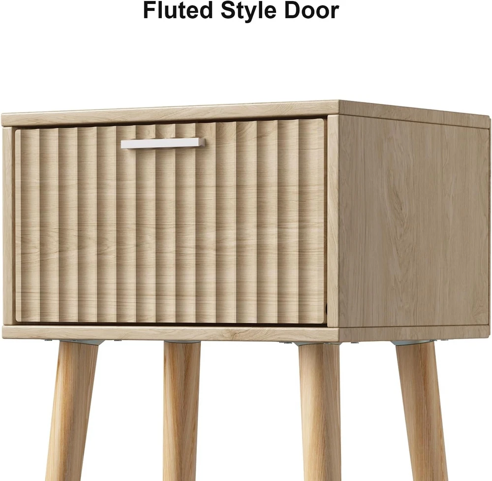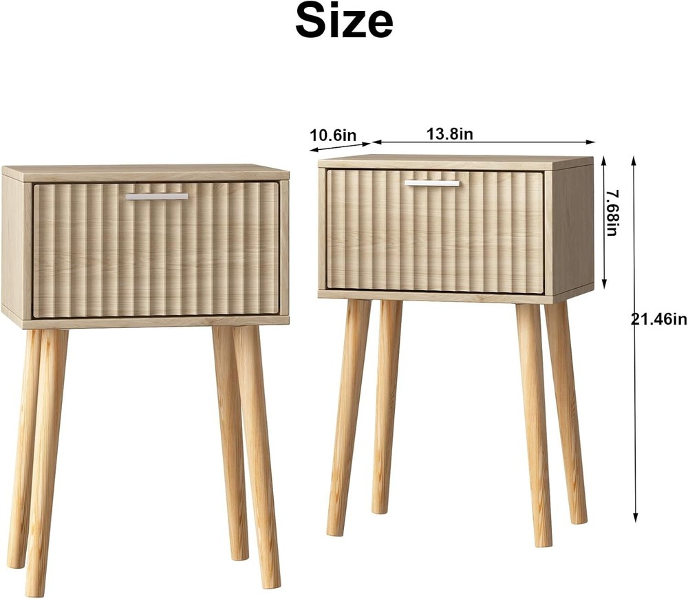 LAATOOREE Nightstands Set of 2, Small Side Table, Bedside Table with Natural Product Details Brand: LAATOOREE Product Dimensions: 13.8"D x 10.6"W x 21.46"H Maximum Weight Recommendation: 100 Pounds Color: Natural Table design: Nightstand Item WeightFrame Material: 17 PoundsWood Top Material TypeShape: Engineered WoodRectangular Minimalist Chic Style: Our nightstands feature unique waveform panels on the doors, adding simple elegance to your bedroom. The chic design suits different bedroom styles such as modern, bohemian or mid-century. Multifunction Bedside table: Our nightstands are not only bed side table, they can also be used as end tables or side tables next to sofa Small Nightstand set of 2: With an fluted door for private storage and a small tabletop for open storage, The Bedside table is perfect for small spaces or small size beds Sturdy& Stable: The end tables are constructed with particle board body, solid wood legs to ensure stability, the rubber pads on the feet prevent your floor from scratching. Assemble at ease: With clear instructions and all the tools offered, just follow our detailed instructions and make sure all parts are correctly nested