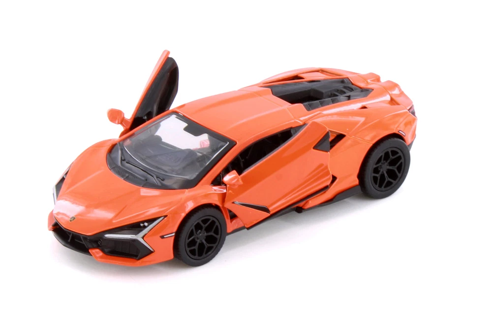Every car lover dreams about this unique sports car from Kinsmart! This Lamborghini Revuelto Hardtop is a 1/38 scale model replica. It comes in orange and features pullback action and openable doors. It's an exceptional addition for any sports car collection, and an awesome find for fervent Lamborghini aficionados! Features: Lamborghini Revuelto Hardtop - 5459D Kinsmart Model Vehicle 1/38 Scale Collectible Model Sports Car This is a 5"L x 2"W x 1.25"H Diecast Metal model with some plastic parts Pullback Action And Openable Doors Manufactured by Kinsmart