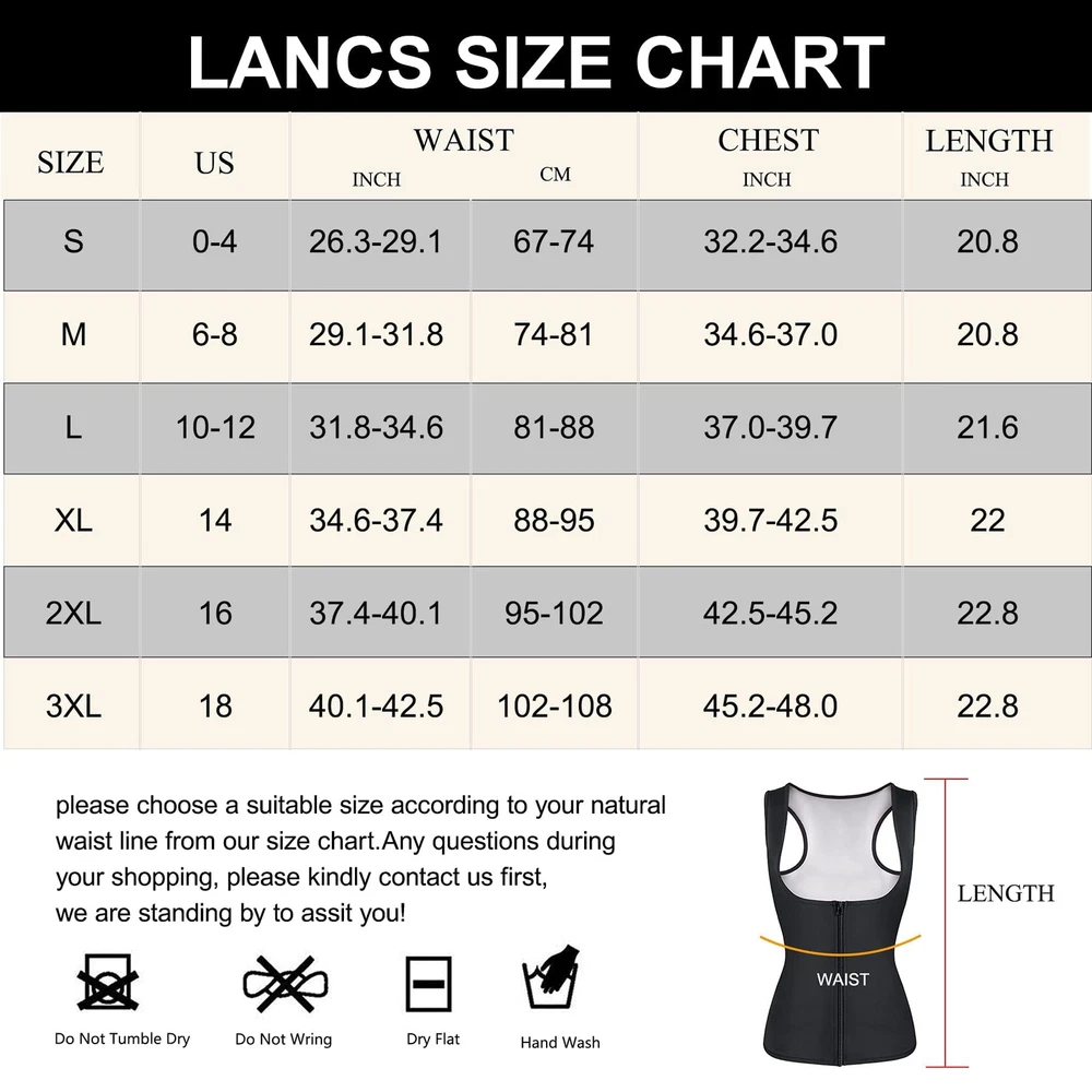 LANCS Sauna Suit for Women Sweat Waist Trainer Zipper Vest Cincher Body Shaper Corset Slimming Workout Tank Tops (Black, Large) EXCELLEENT HEAT-TRAPPING SAUNA VEST: Lancs sauna suits for women is made of high quality silver heat trapping polymer fabric, soft, sturdy, and not bulky. It is comfortable enough to wear most of day. This sauna waist trainer for women could warm up faster, burn extra fat around the abdomen and waist, makes sweat like crazy. Workout with this sweat vest for women, help achieve a healthy slimming goal and have a wonderful shape. 2 in 1 COMPRESSION WAIST CINCHER: Our waist trainer vest for women weight loss with two layer, inside sauna vest, outside zipper sweat vest. This workout vest provide high compress your belly, reduces swelling, flatten the abdomen, it can fits snug for longer torso or short torso. This workout waist trainer corset for women will make you sweat the area for weight or water loss. FIRM TUMMY CONTROL SHAPEWEAR: This sauna sweat suits for women combo hook and zipper. Our sauna vest has a strong zipper, is easy to put on and off, allows you to hide it. 3 different rows and hooks under zipper, you can pick your particular comfort level, the tighter the loops the better it works so you progress your way to getting smaller. The sweat body shaper girdles will give you a sexy natural curve. U-SHAPED PUSH UP BREAST & EXTRA SUPPORT: This waist trimmer for women with special U-type anti-droop design, gives a breast lift while snatching the waist, make your chest more erect and attractive. This waist slimmer vest for women has 2 steel bones on the back, it doesn't dig into your skin like other waist cinchers shapewear. Women workout waist shaper provides back support, relief back pain, improving posture, prevent rolling up during exercise. SWEAT MORE IN WORKOUT: This sauna workout tank tops for women can be drenched while workout, like gym, running, yoga, fitness, cycling, jogging, sports, boxing, hiking. You can wear it under clothing, definitely 5 times your sweat production! Also, this postpartum waist trainer can help postpartum recovery, help maternity body get back to its original shape. Shipping We offer FREE shipping on all orders! We ship within Three business days of payment, usually sooner. We use a selection of shipping services such as UPS, FedEx, USPS etc. We only ship to the lower 48 states, no APO/FPO addresses or PO Boxes allowed. Local pickups and combined shipping options are not provided at this time. Return You can return a product for up to 30 days from the date you purchased it. Any product you return must be in the same condition you received it and in the original packaging. Please keep the receipt. Payment We accept payment by any of the following methods: PayPal Please pay as soon as possible after winning an auction, as that will allow us to post your item to you sooner! Feedback Customer satisfaction is very important to us. If you have any problem with your order, please contact us and we will do our best to make you satisfied. Contact Us If you have any queries, please contact us via ebay. We usually respond within 24 hours on weekdays. Please visit our eBay store to check out other items for sale! Thank you for shopping at our store.