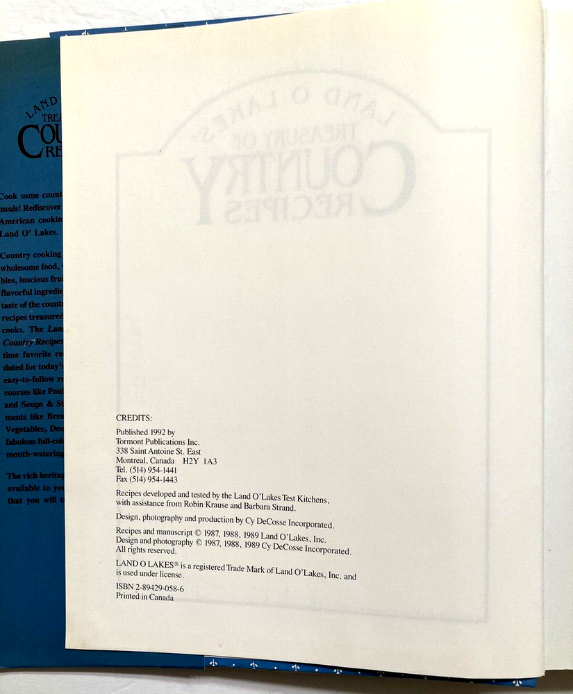 LAND O LAKES TREASURY OF COUNTRY RECIPES 1989 511 Page Hardcover & Dust Jacket Cookbook Excellent Condition $29 Thank you for looking! AH