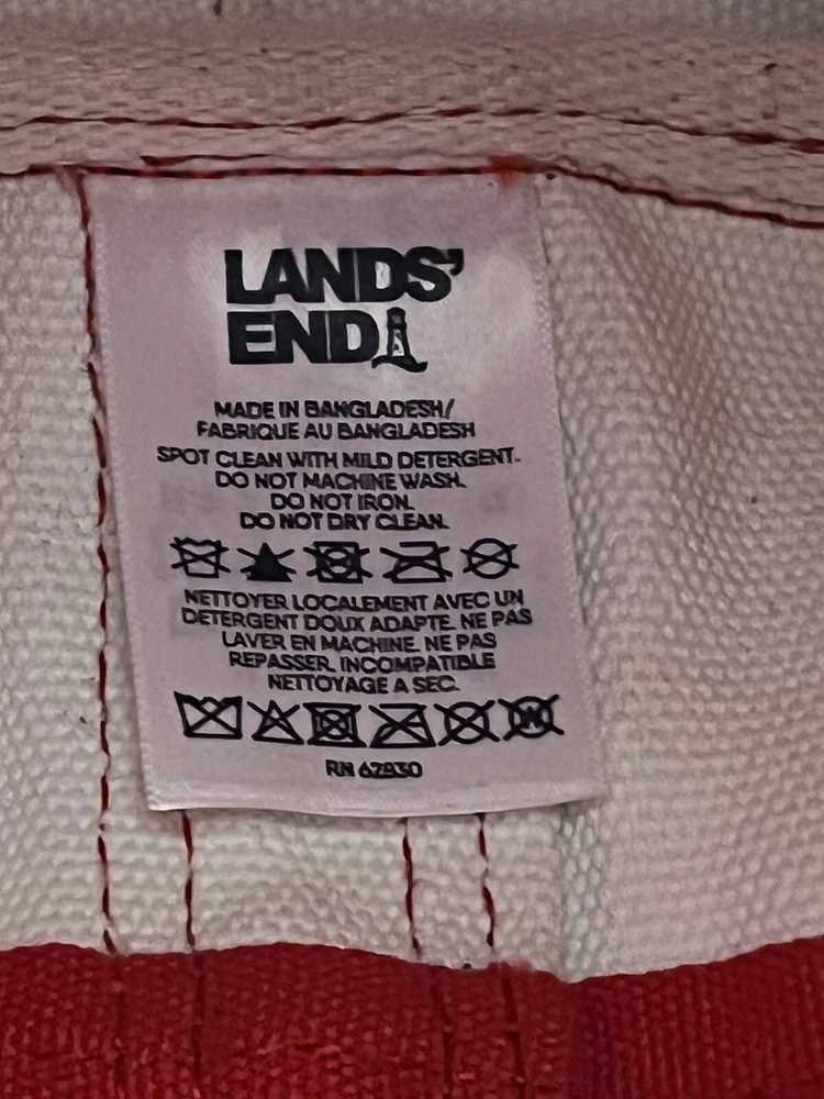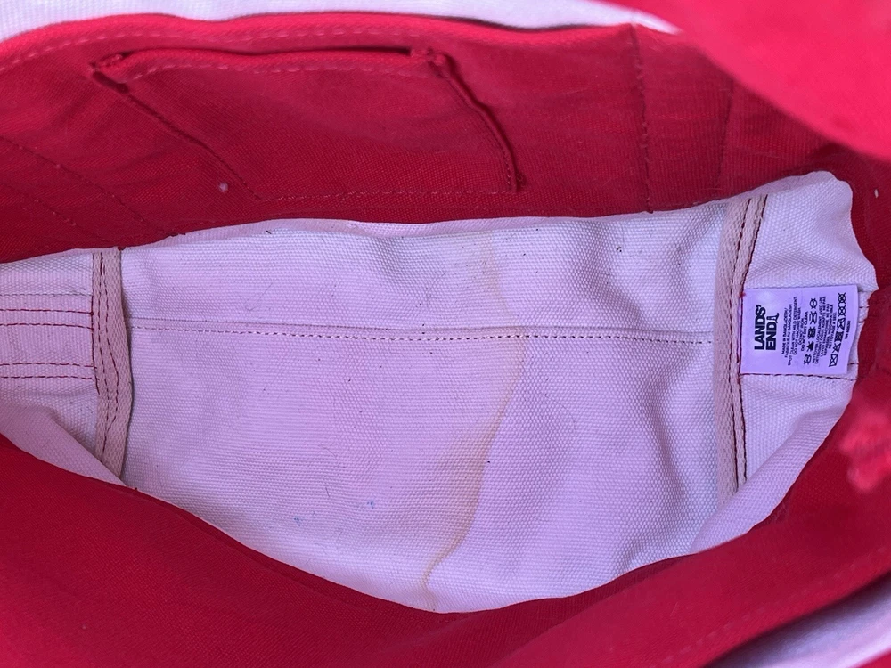 This Lands' End canvas tote bag is perfect for any occasion, whether it's a day out on the boat or a trip to the beach. With a spacious interior measuring 17" along the top and 15" in height, this bag can hold all your essentials and then some. Zipper Closure. The exterior slip pocket and multiple pockets provide ample storage space, while the double handles make it easy to carry. Crafted from durable canvas material, this bag is built to last and can withstand even the toughest weather conditions. The bag is in used condition. Does has faded areas and a water stain inside bottom. It is in good usable condition beside that. Please see photos for a closer look I'm happy to answer any question.