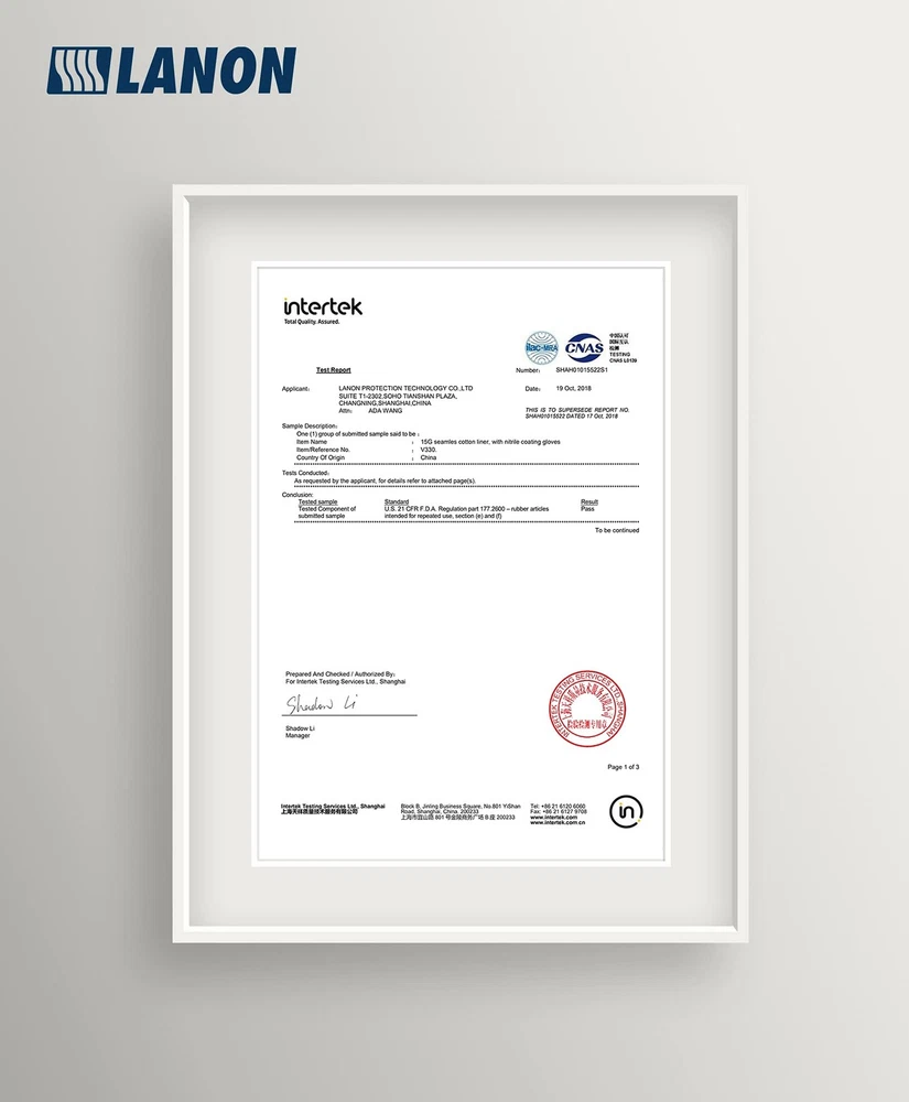 Specification: Brand: Material: Nitrile Coated + Cotton Liner Color: Black Style: Multi-Purpose Use Type: Reusable Hazard: Heavy Duty Washing Way: Machine Washable (Air Dried) Maintenance & Cleanup: 1. The gloves can be hand washed with neutral detergent and running water. If machine washed, please don't put them into the dryer, just air dried. 2. The nitrile gloves should be stored at low temperatures, in a dry and dark place. Cautions: 1. Don't use with chemicals without prior trials other than those tested. 2. Don't wear sharp ornaments like the diamond ring and other jewelry. 3. Keep away from sharp items like needles and toothpicks. 4. These gloves can't be used as heat insulation gloves, don't use them outside of 14℉-104℉. DURABLE MATERIALS - The ergonomically shaped reusable work gloves are made of imported nitrile, offer high resistance to chemicals, acid, alkali, solvent, and mechanical risks, also can maintain the high performance for the oily environment. 15 GAUGE SEAMLESS COTTON LINER - With 15 gauge seamless cotton liner, these heavy duty gloves are breathable, easy to pull on and off. You will be able to wear these gloves for long periods of time without discomfort. The extended cuffs provide effective barrier protection for wrist and forearm from splashes, abrasives and dangerous chemicals. GREAT GRIP - The non-slip MicroFoam textured palm chemical resistant gloves offer good grip to grab the wet and greasy parts. They passed the highest level 4 (at least 8000 cycles) of abrasion resistance test, level 1 (1.2 times) of blade resistance test, level 2 (25 force) of tear resistance test and level 1 (20 force) of puncture resistance test. MULTIPURPOSE - The two-tone designed NBR work gloves are latex free, better solutions for people with sensitive skin. They are ideal for handling chemicals, petrochemical, mechanical manufacturing, mining, agriculture, farm, gardening, construction, automotive industry, forestry and more. CERTIFICATIONS - LANON industrial gloves for hand protection are certificated by CE 0075 CAT III, with Standards EN 388:2016, EN 420, EN ISO374-5:2016, EN ISO374-1:2016/Type A, and meet CA Prop.65 regulations for phthalates. It also passed the FDA regulation test.