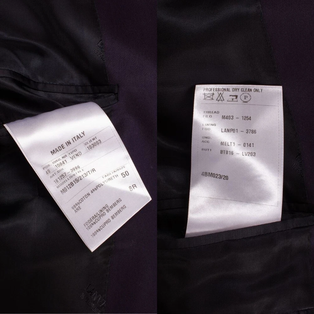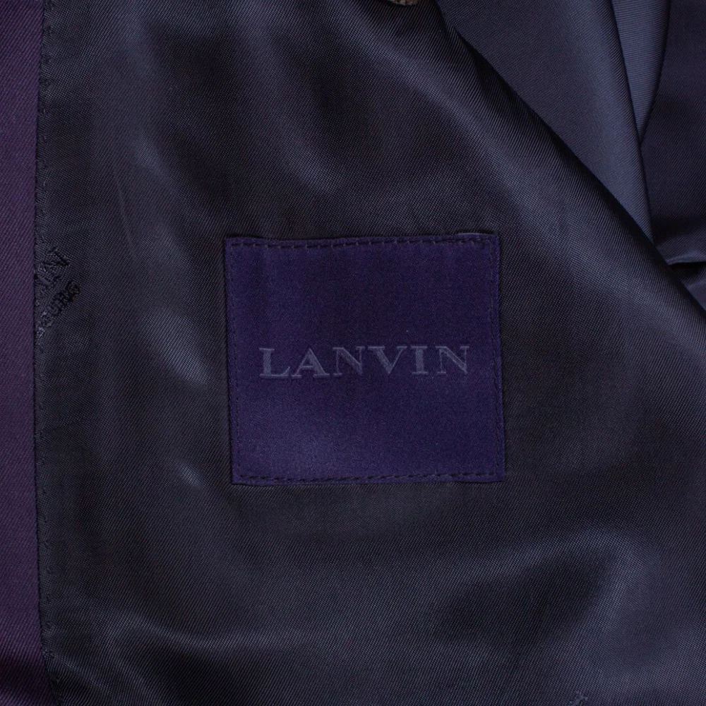 Jacket Front Button Style: Two-Button Size Type: Regular Jacket/Coat Length: Regular Handmade: No Style: Blazer Country/Region of Manufacture: Italy Size: 50 Jacket Cut: Single-Breasted Vintage: No Pattern: Solid Type: Blazer Fit: Regular Department: Men Color: Blue Brand: Lanvin Season: Fall, Spring, Winter Personalize: No Chest Size: 40 Jacket Vent Style: Single-Vented Material: Cotton Blend Occasion: Business, Casual, Formal, Party/Cocktail, Travel, Wedding