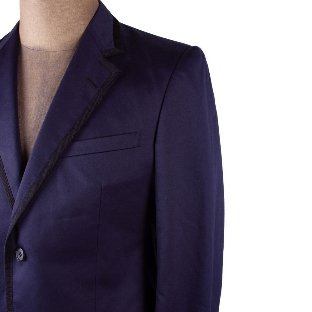 1. This Lanvin blazer is a timeless piece with a sleek dark blue cotton blend and elegant grosgrain trim. The Italian craftsmanship shines through in the tailored fit and classic design. The measurements are spot-on, making it easy to style for a polished look. Perfect for adding sophistication to any wardrobe—definitely a standout piece!