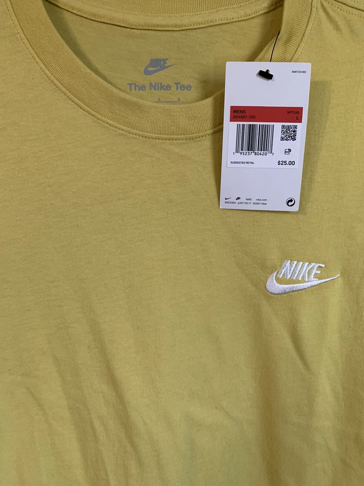 LARGE Nike Sportswear Club Embroidered T-Shirt Men's YELLOW.