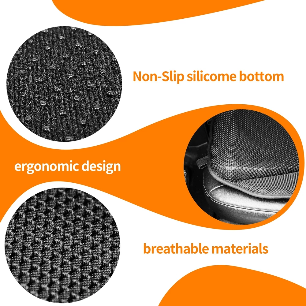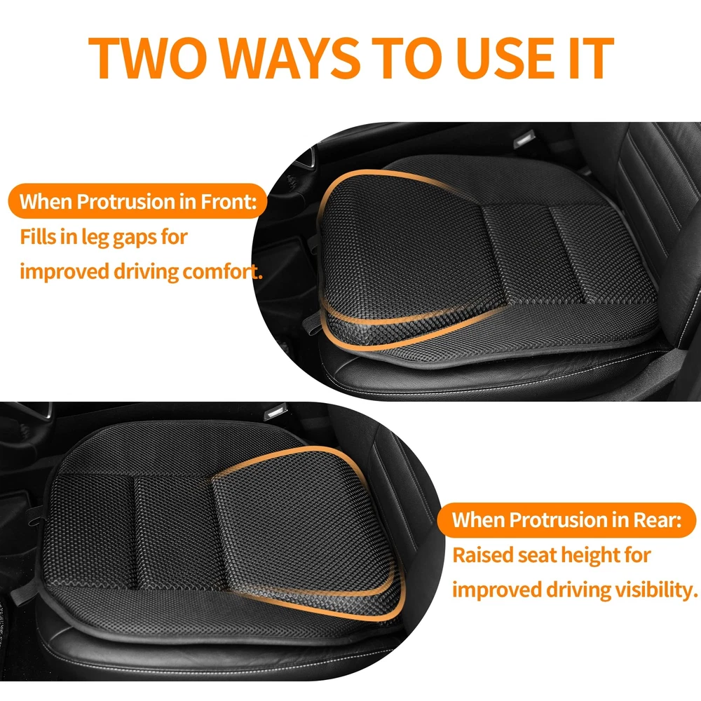 Upgraded Comfort: Our car front seat cover set is made of high-quality memory foam with superior support and cushioning for maximum comfort during your drive. Featuring enhanced support, this padded seat protector helps promote a more pleasant seating position and reduces fatigue and stress on the lower back, lumbar and tailbone caused by long hours of driving. Unique Design: Feel free to rotate the bottom seat cover 180 ° to use it either as a seat booster to improve driving visibility or as a leg gap filler according to your needs.You can mix and match their use by placing the seat cushion on one seat and the backrest cushion on another, customizing your comfort experience. Universal Fit & Easy Installation: Our car seat cushion set fits most vehicles. Simply thread the hooks through the gap between the bottom and back seat and secure the buckles around the headrests and you're ready to enjoy a refreshed interior! Installation instructions are included in the package. Breathability: The seat cushion is made from breathable materials that allow air circulation, which prevents discomfort caused by sweat and heat buildup and keeps you cool and dry throughout your drive. Durable & Non-slip: The seat pads are made from durable materials that are easy to clean and gives you more protection against daily wear and tear. Anti-slip silicone on the back of both the bottom cover and the back cover ensures a secure and stable fit with the car seat, preventing any accidental movement on the go.