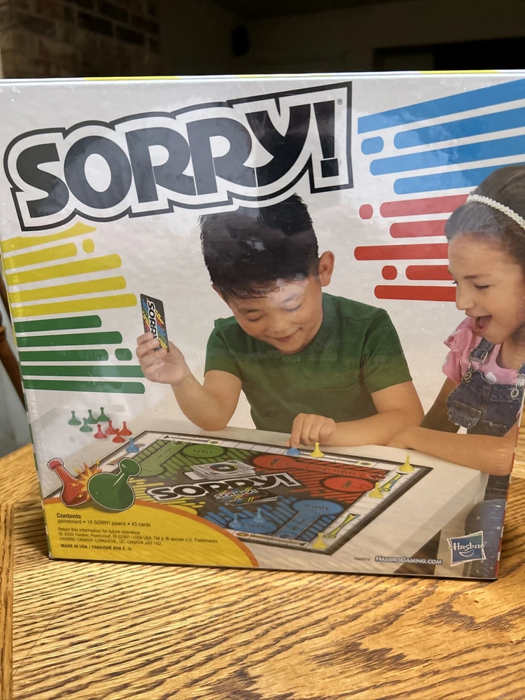 Game Title: Sorry! Country/Region of Manufacture: United States Brand: Hasbro Min. Number of Players: 2 players Age Level: 12 Months & Under, 8-11 Years, 12-16 Years, 17 Years & Up Game Type: Board Game Theme: Strategy UPC: 630509938124 Type: Game Board Year: 2017 gtin13: 630509938124 Character Family: Friends Award: Games 100 Features: Portable MPN: A5065 Recommended Age Range: 6 Years & Up Gender: Boys & Girls